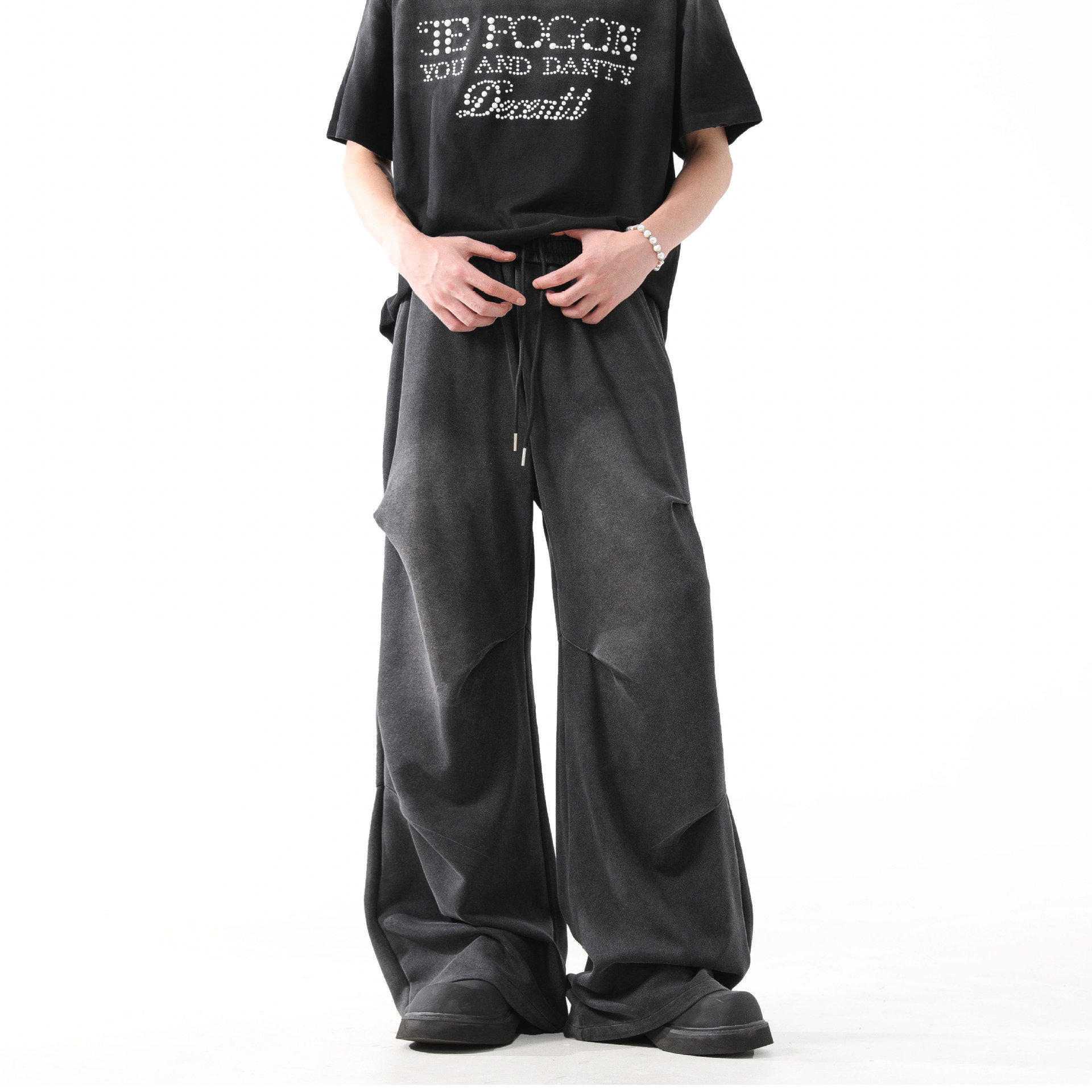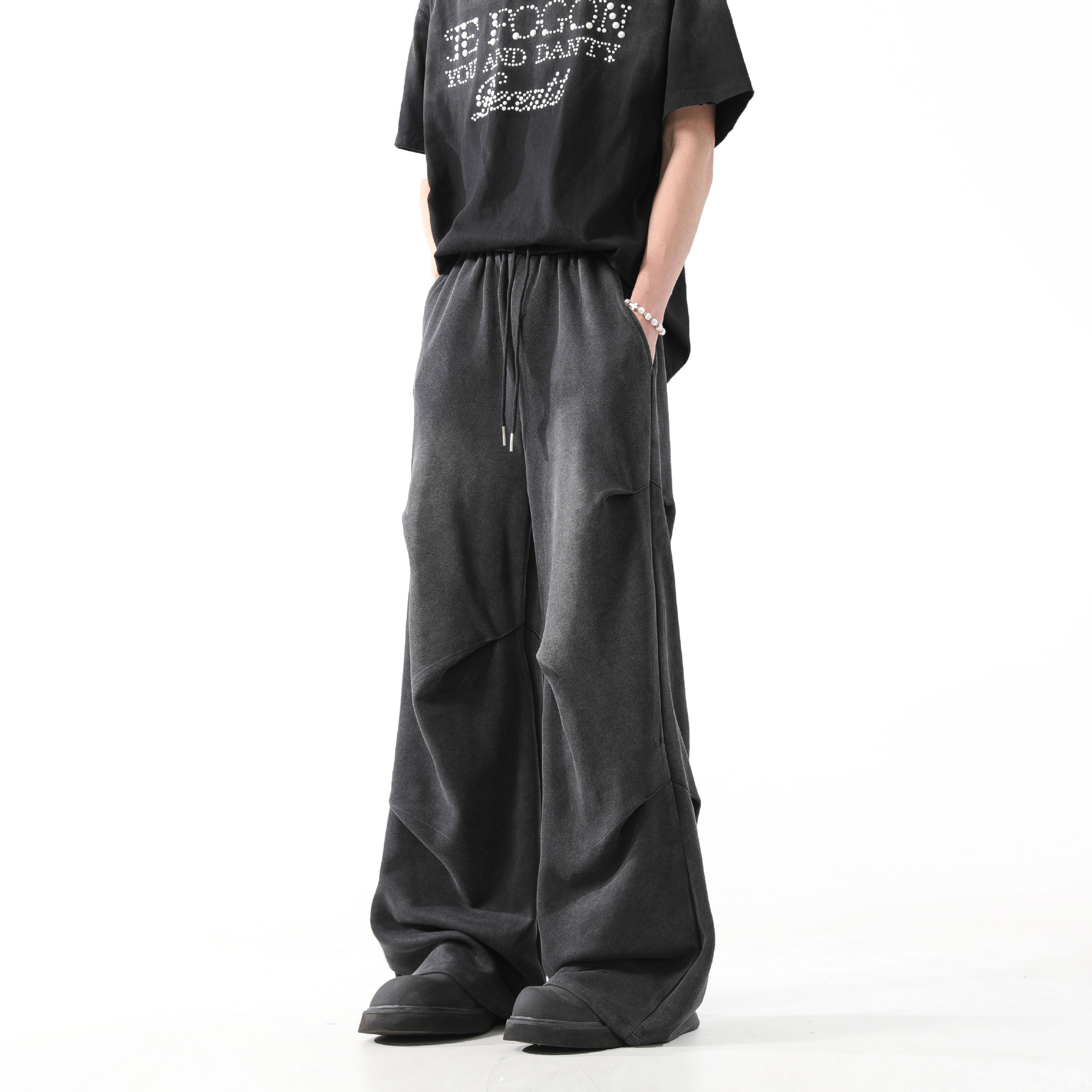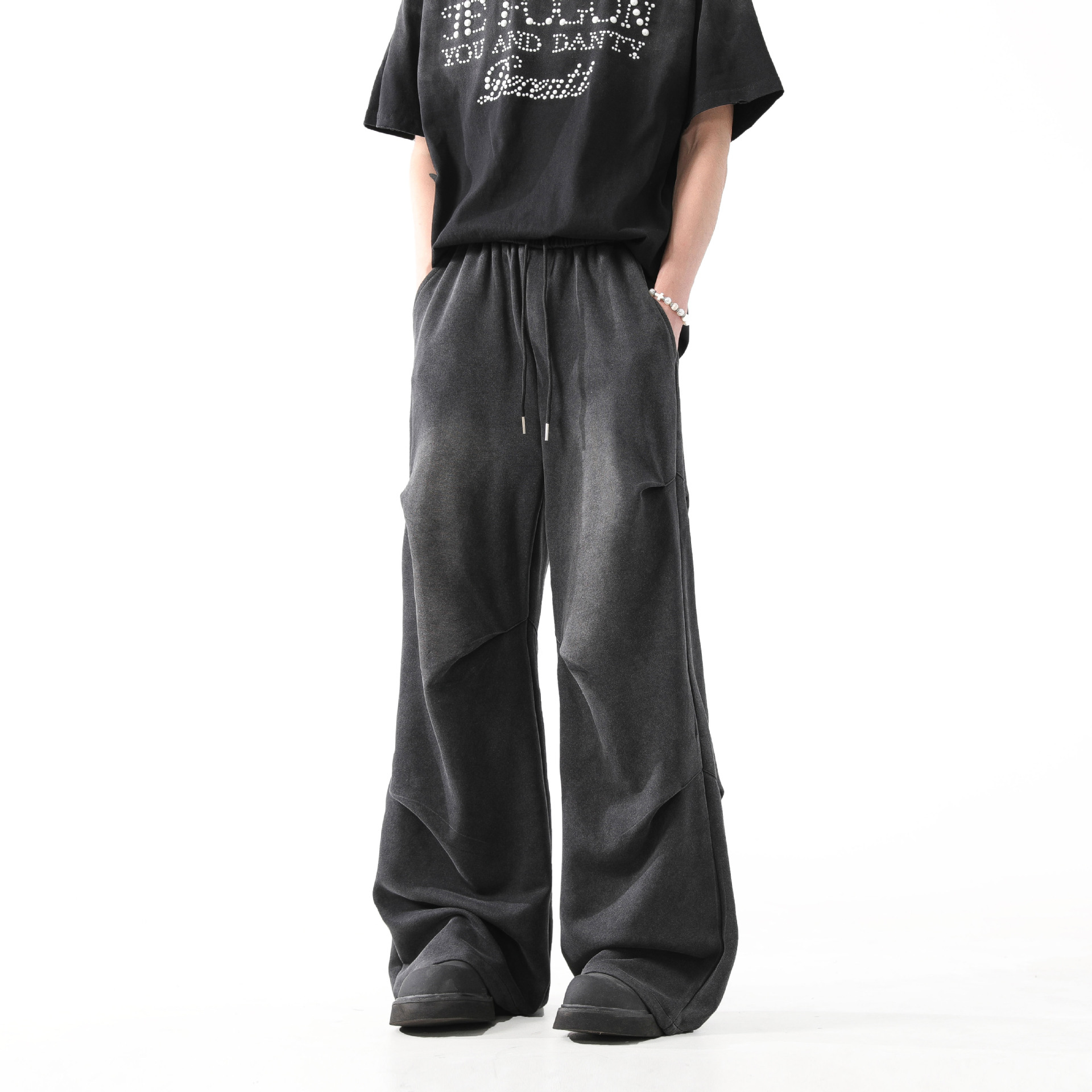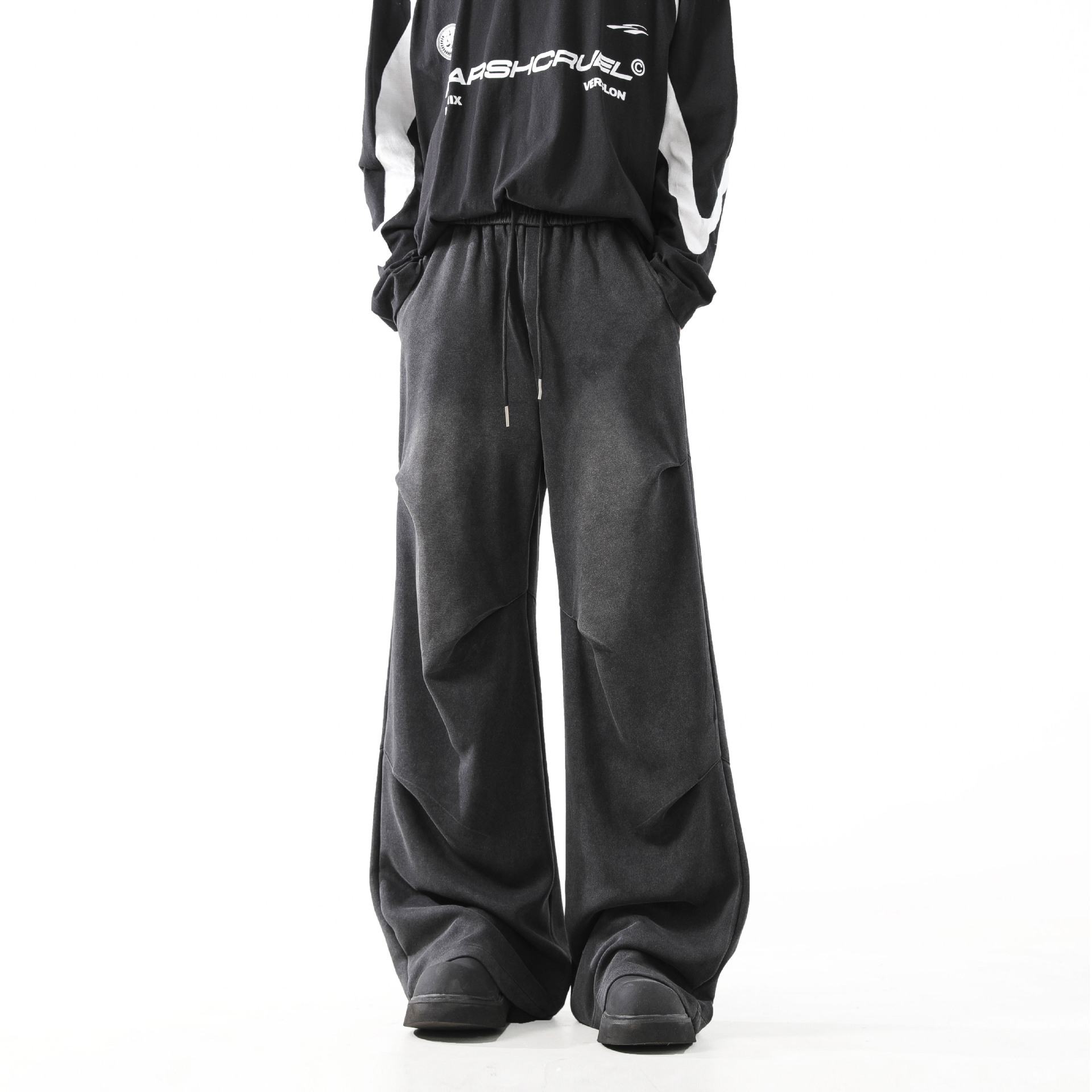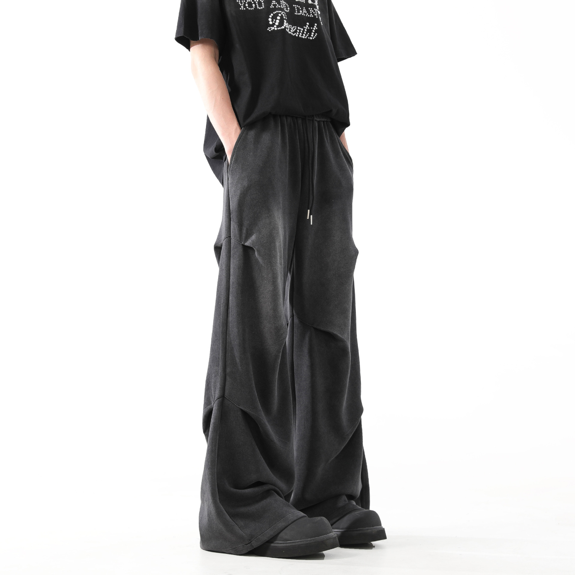 Pantalon de survêtement délavé américain pour hommes, design plissé, pantalon droit ample
