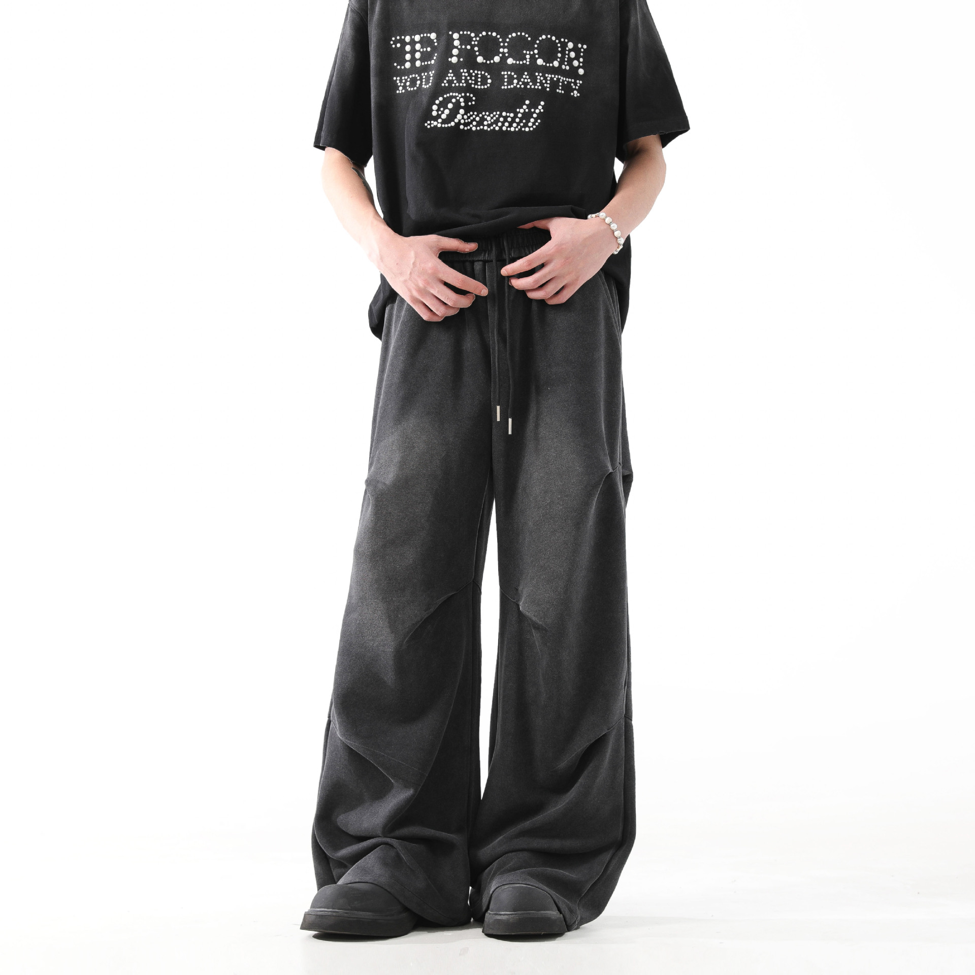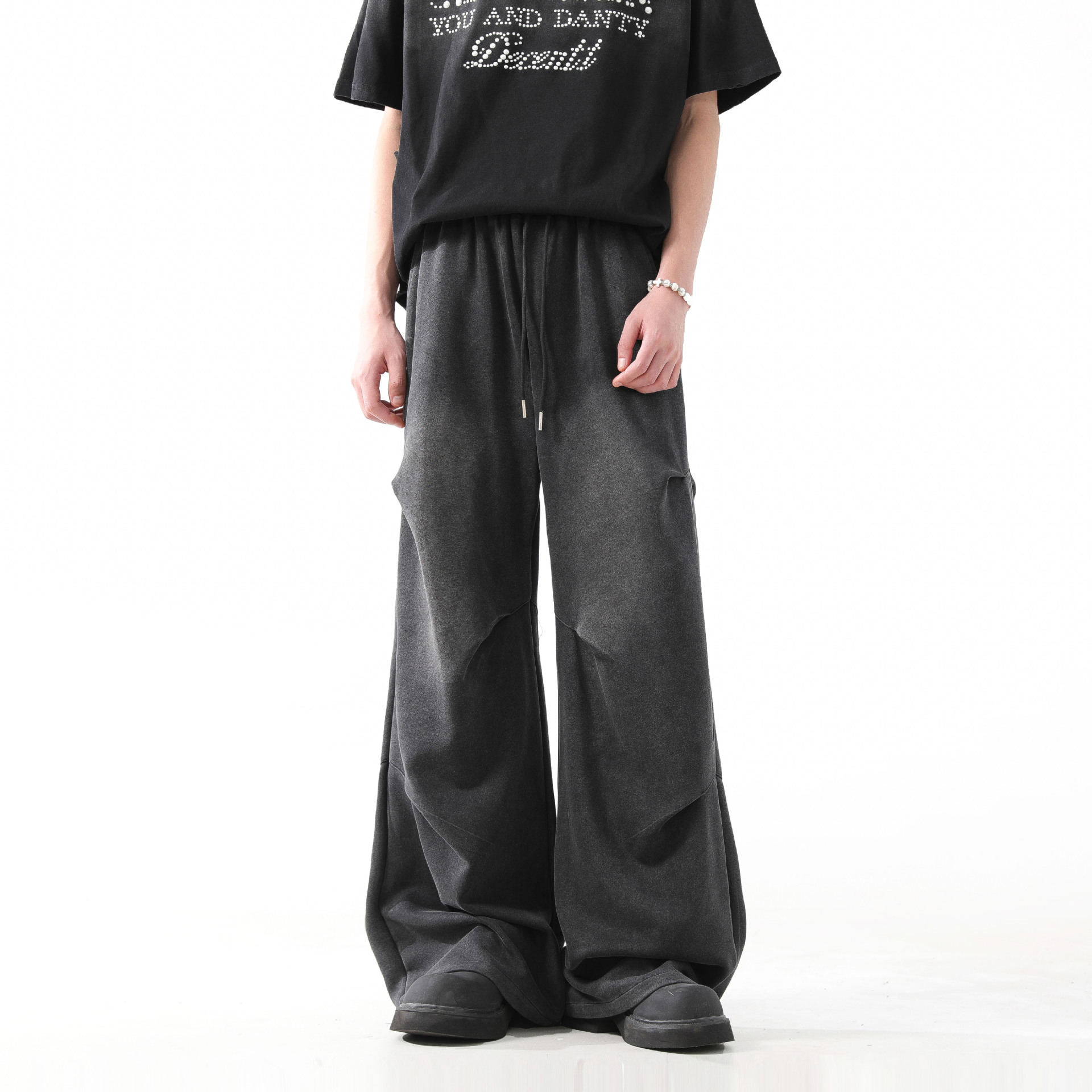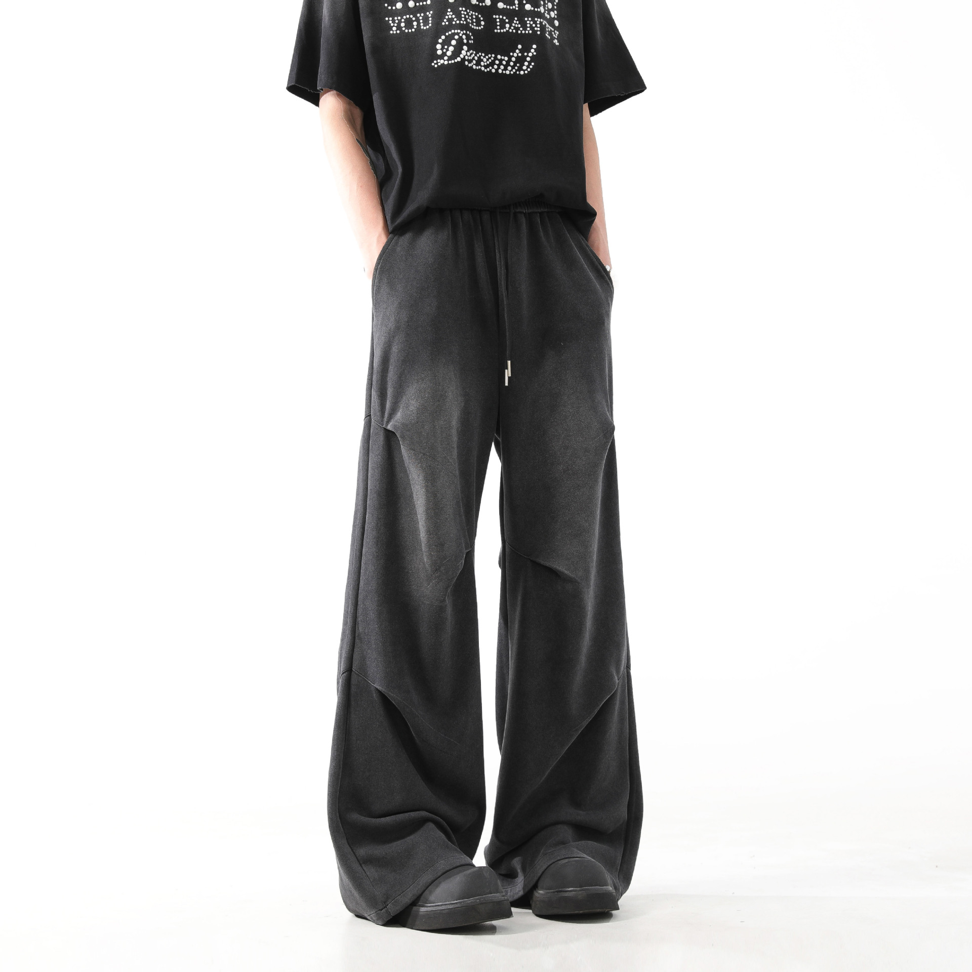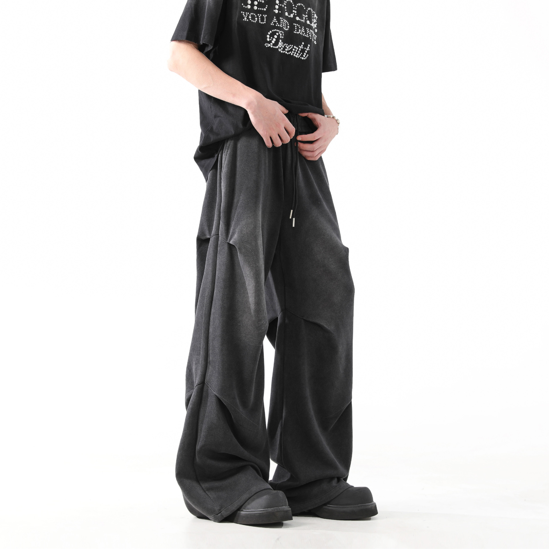 Pantalon de survêtement délavé américain pour hommes, design plissé, pantalon droit ample