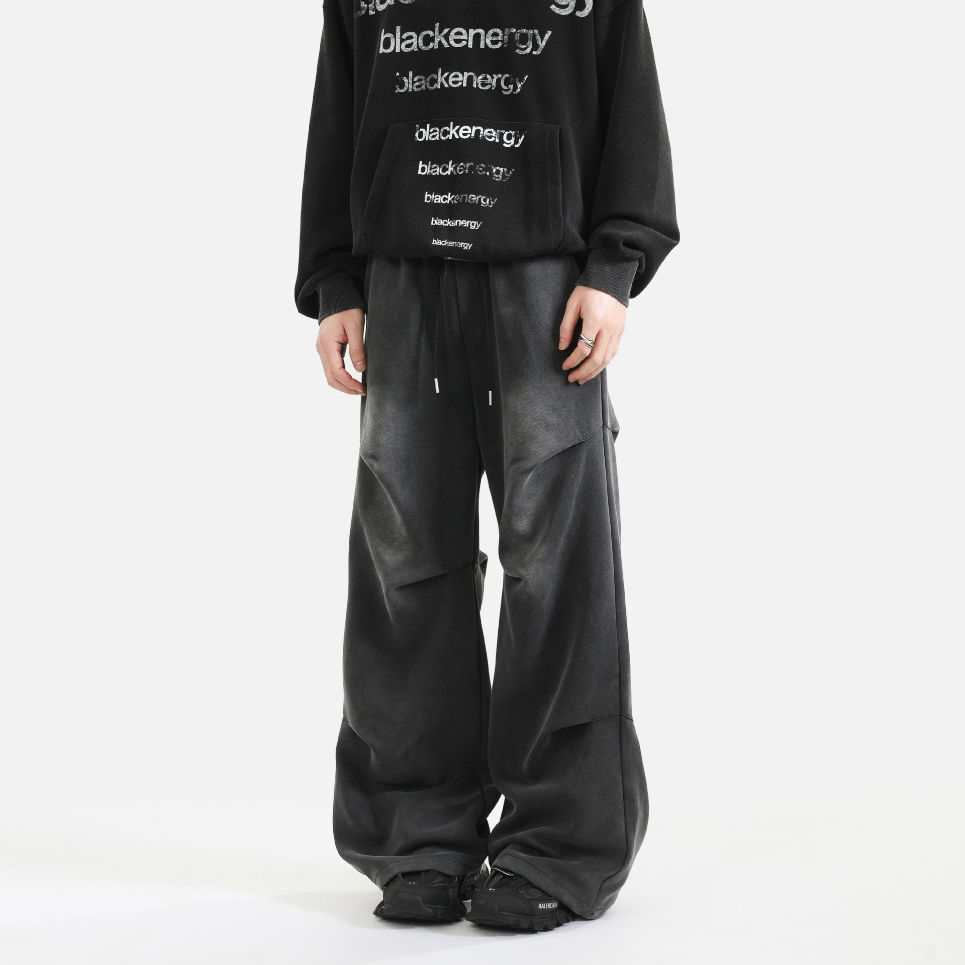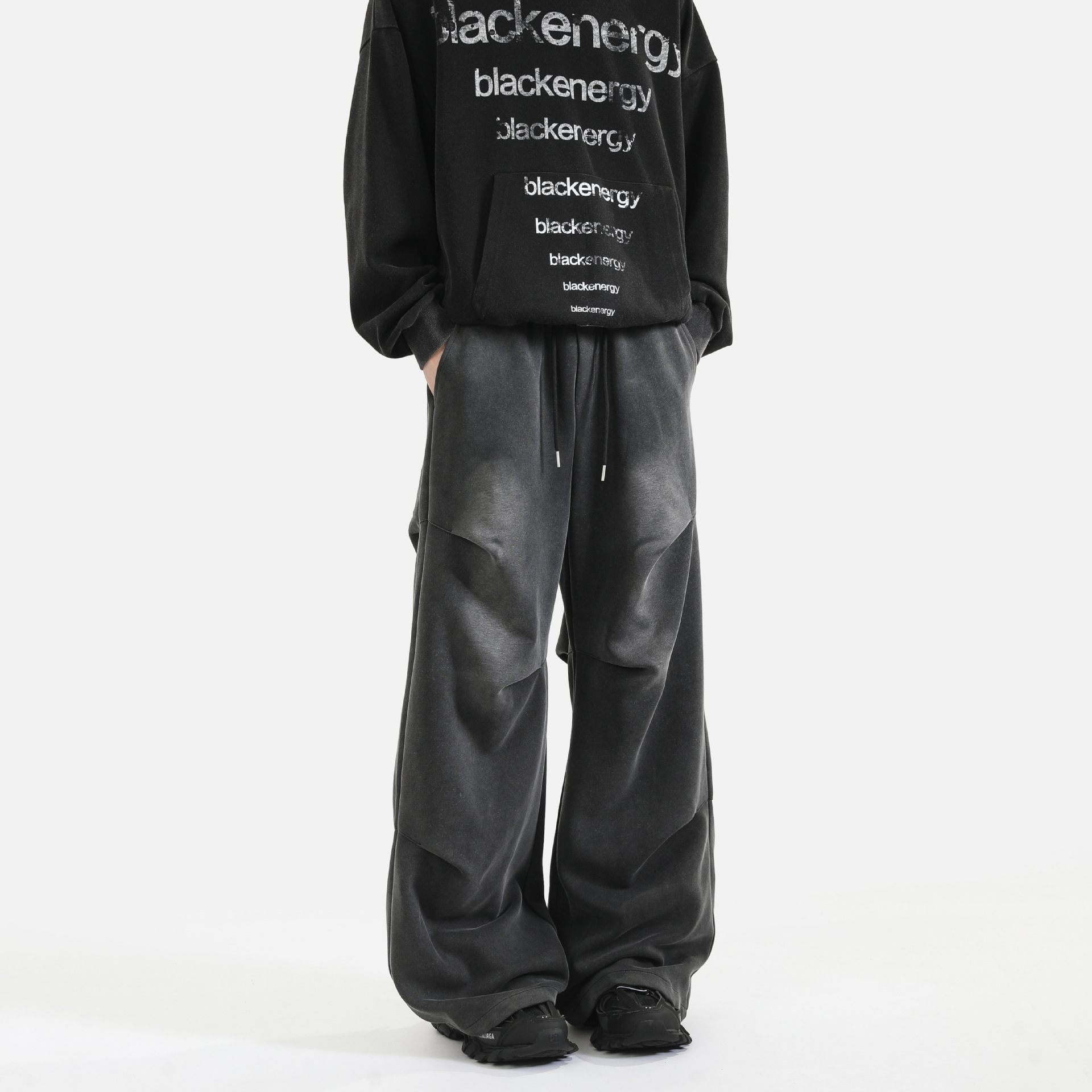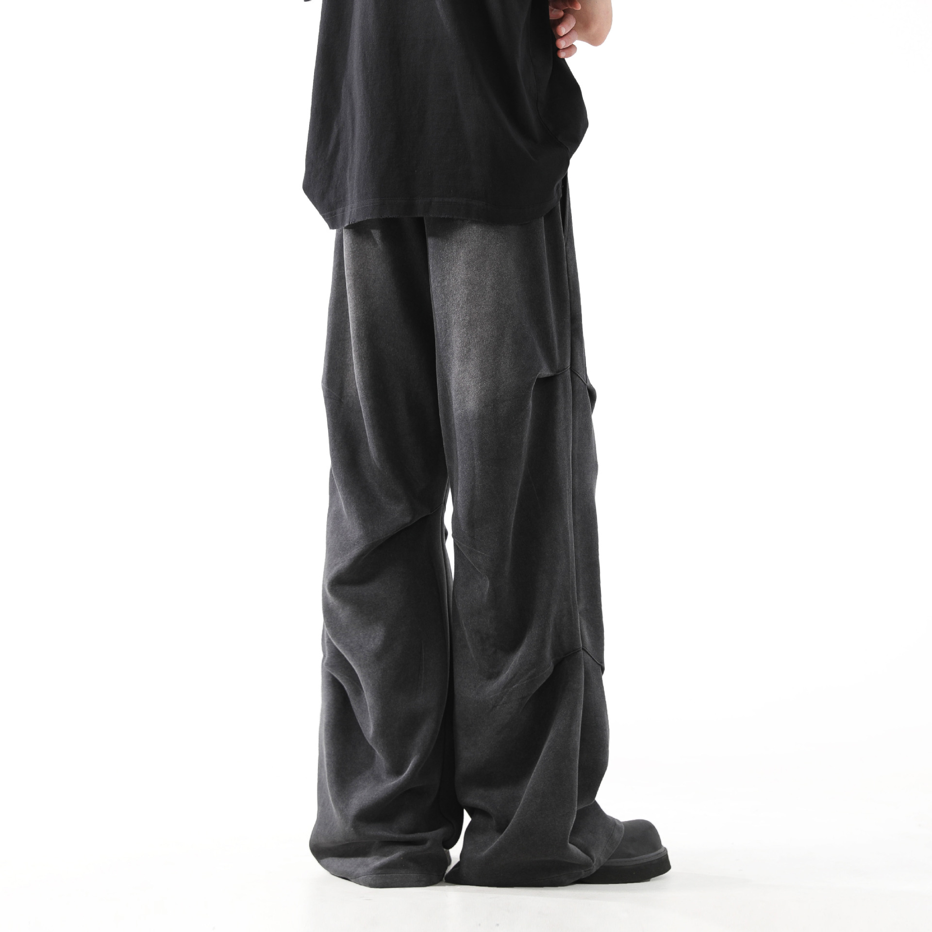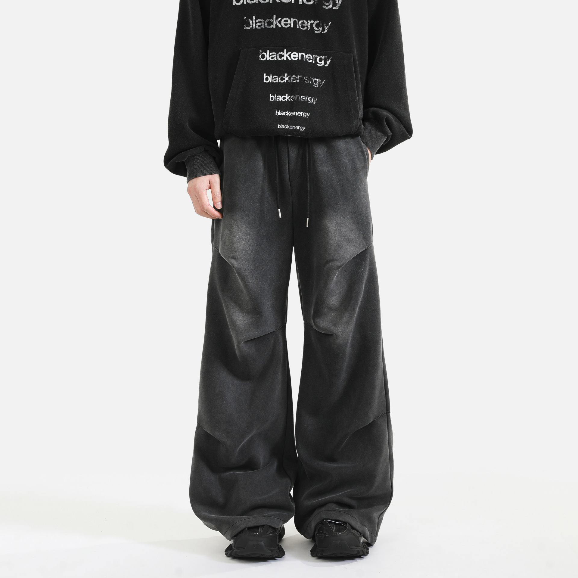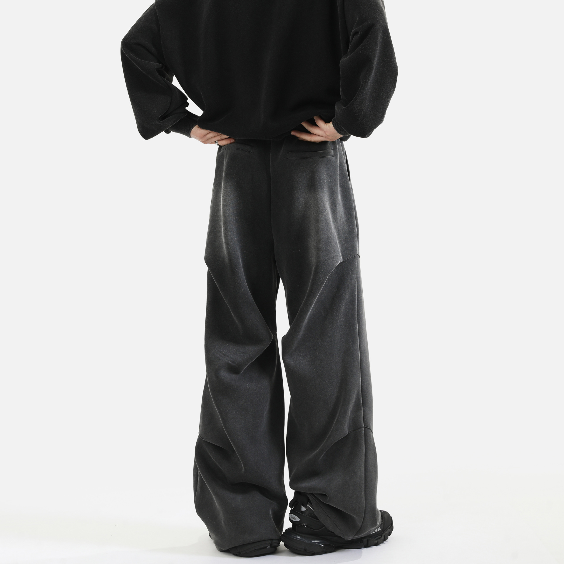 Pantalon de survêtement délavé américain pour hommes, design plissé, pantalon droit ample
