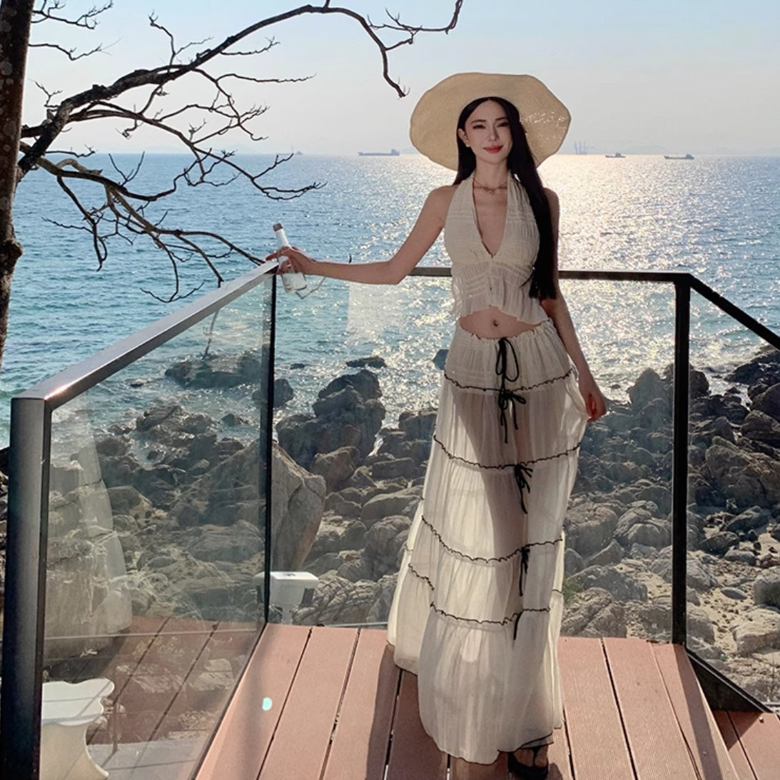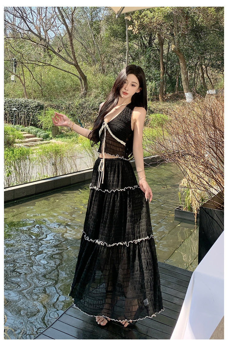Ensemble jupe grande taille haute moulante dos nu lacée