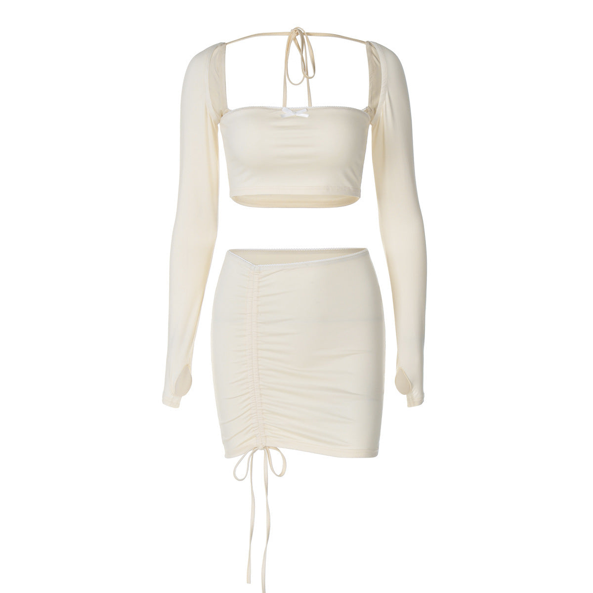 Jupe à manches longues avec cordon de serrage et nœud papillon, tailleur en dentelle européenne et américaine dos nu à manches longues et fermeture à crochet, coupe ajustée