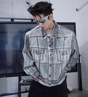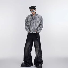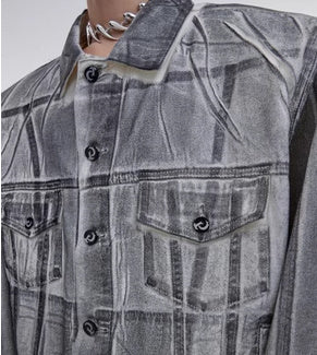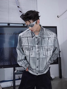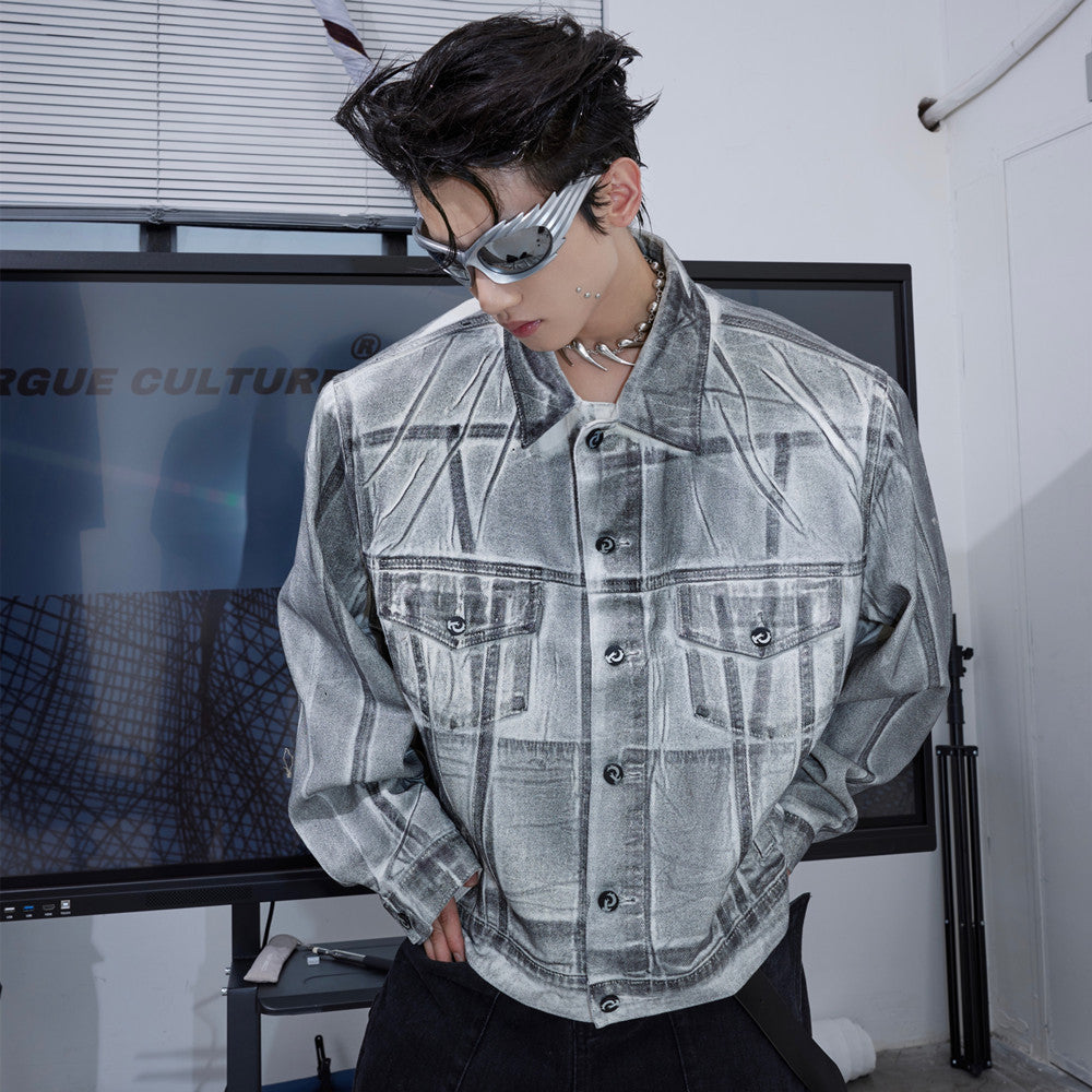 Veste en jean déconstruite à épaules rembourrées et enduites