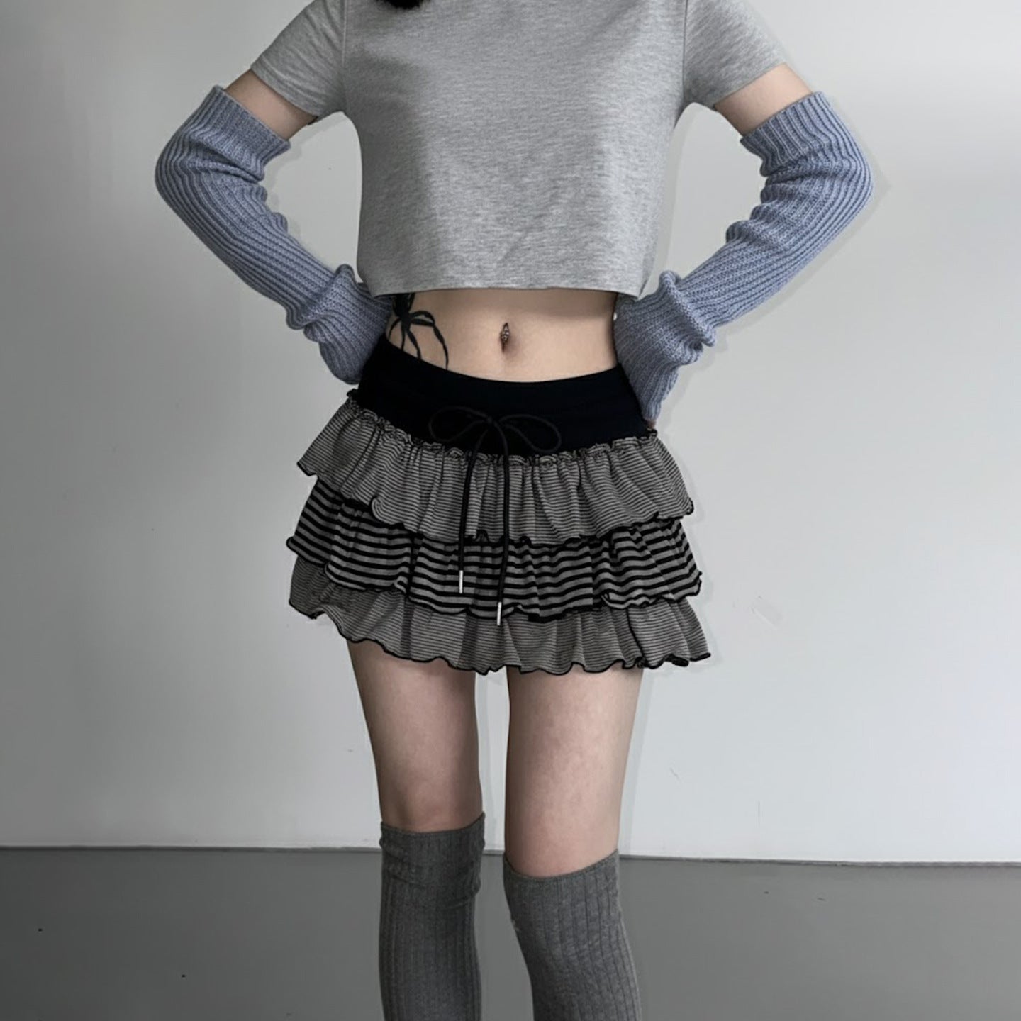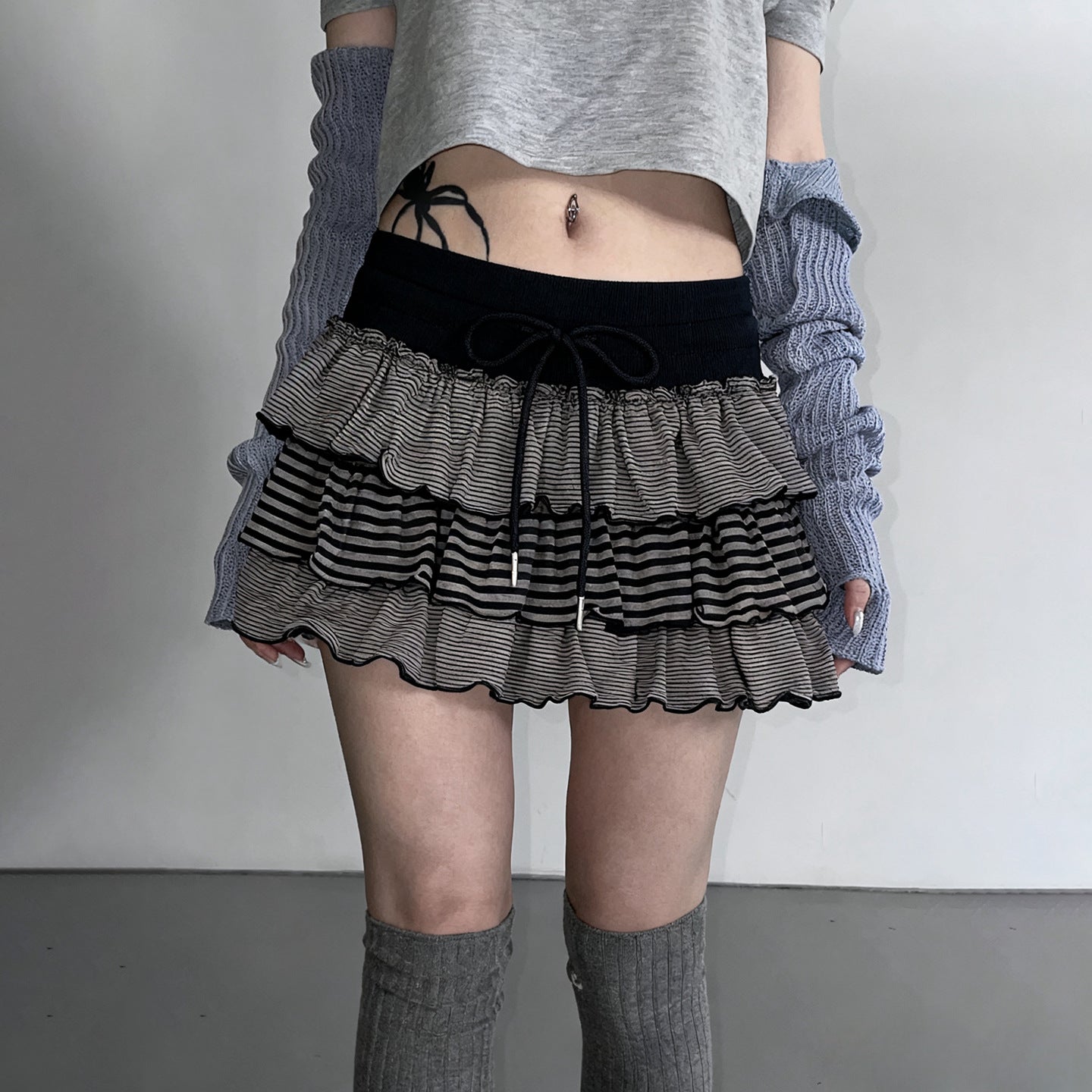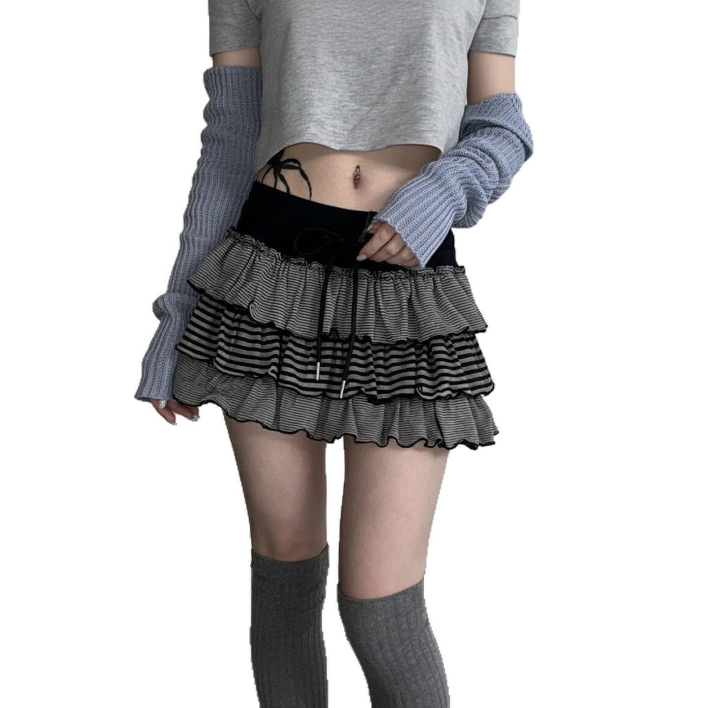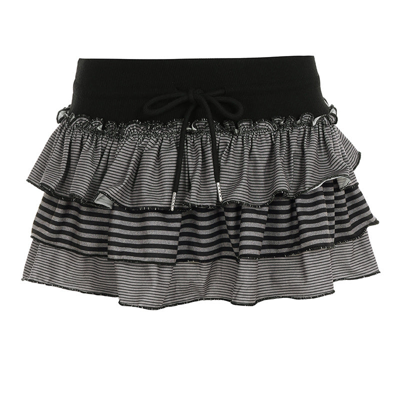 Jupe à volants superposés à rayures contrastées flatteuse pour la silhouette