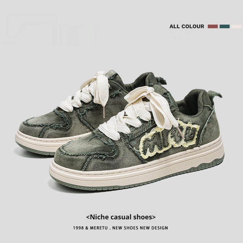 Chaussures en toile rétro décontractées et respirantes en denim à semelles épaisses