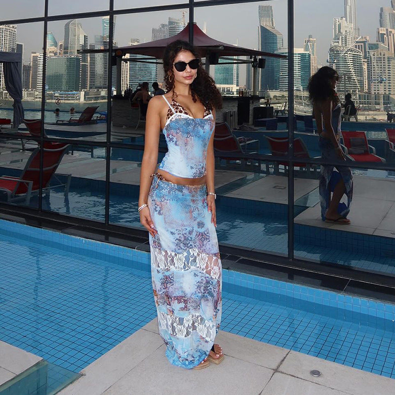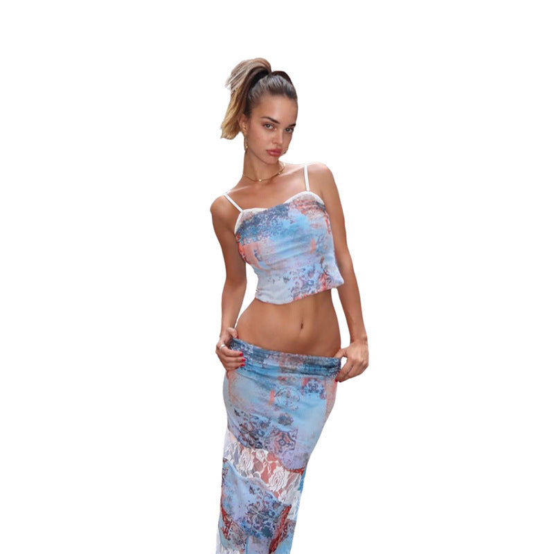Jupe taille haute fendue en dentelle imprimée pour fille sexy