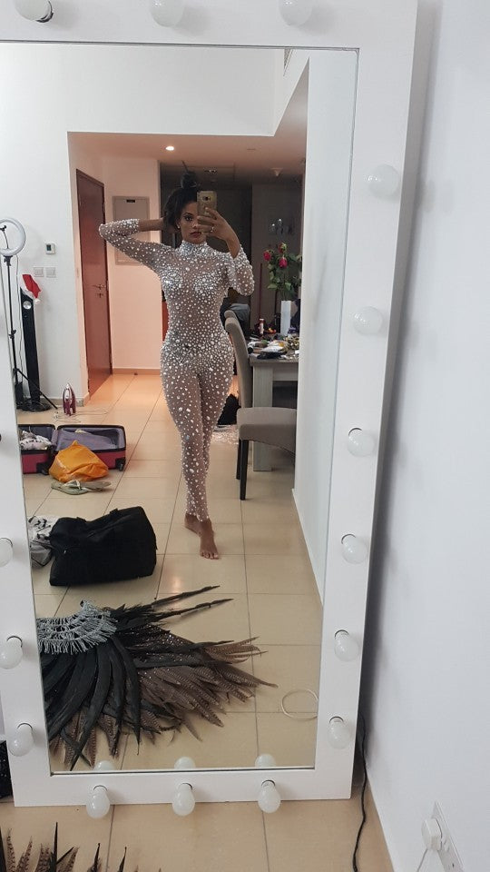 Combinaison à paillettes diamant, coupe ajustée, manches longues
