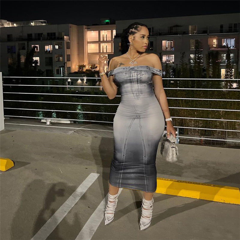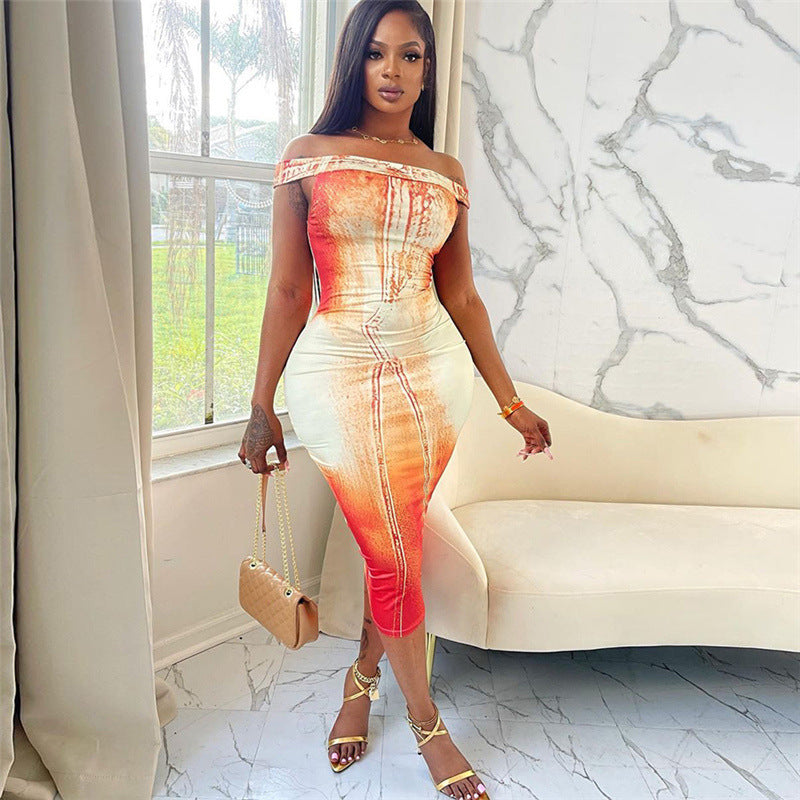 Robe slim taille haute à impression numérique pour femme