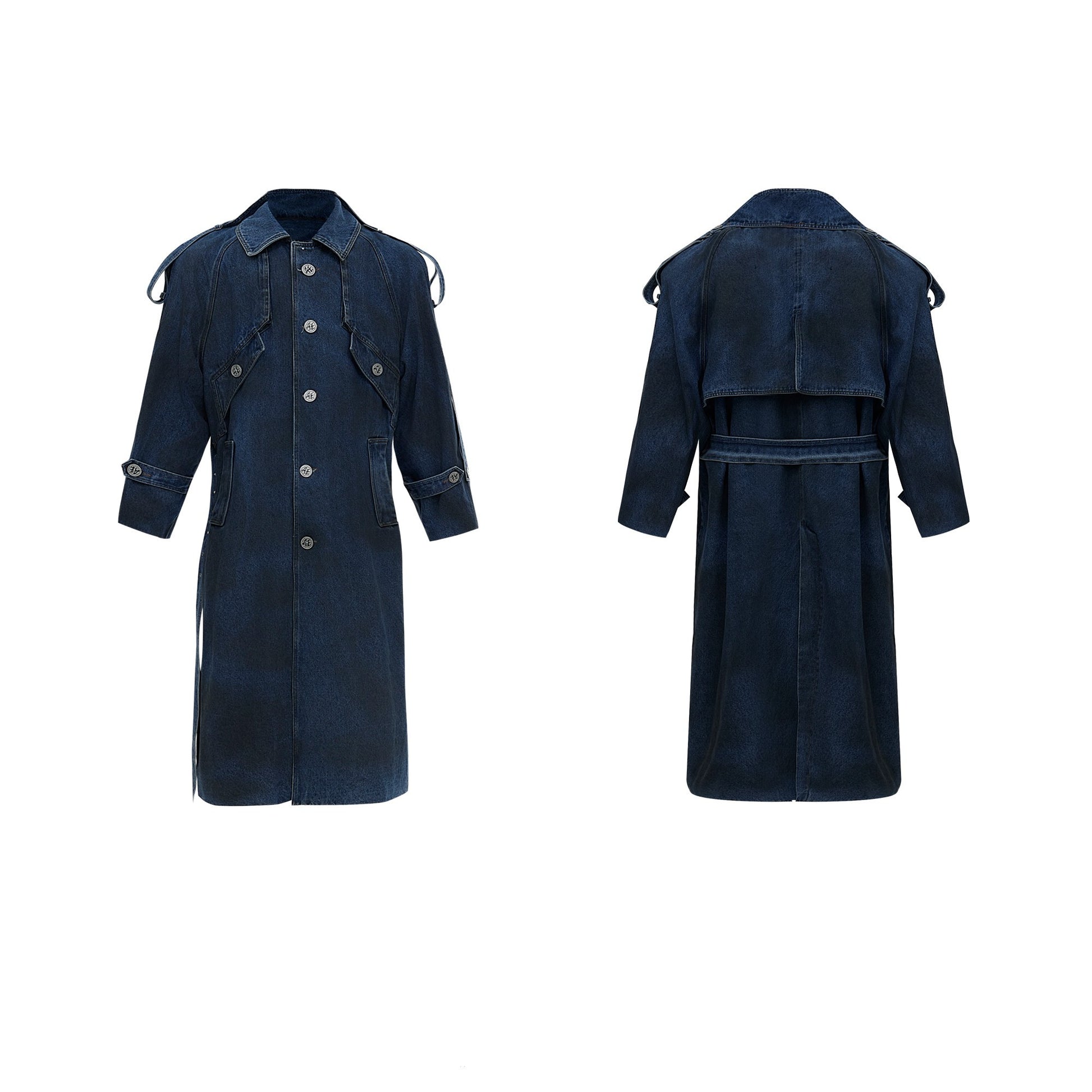 Manteau long en denim à double épaisseur et épaules rembourrées