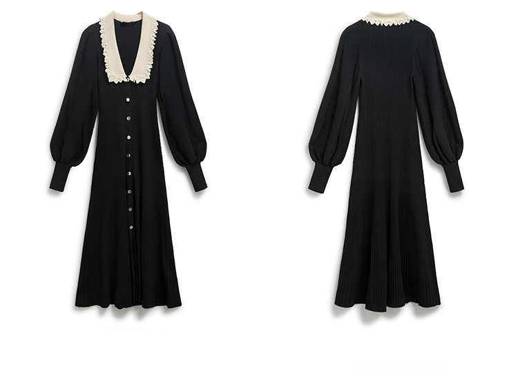 Pull slim à revers boutonné couleur début d'automne, jupe longue noire à manches longues et taille S