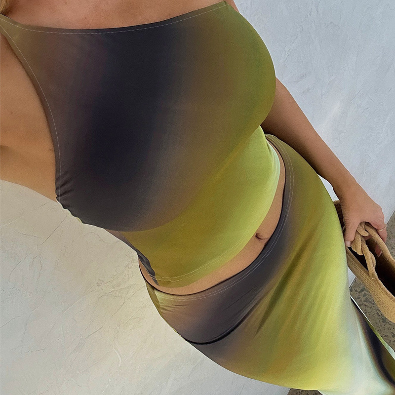 Robe longue décontractée à une épaule et dos nu pour femme, dégradé de couleurs, coupe slim