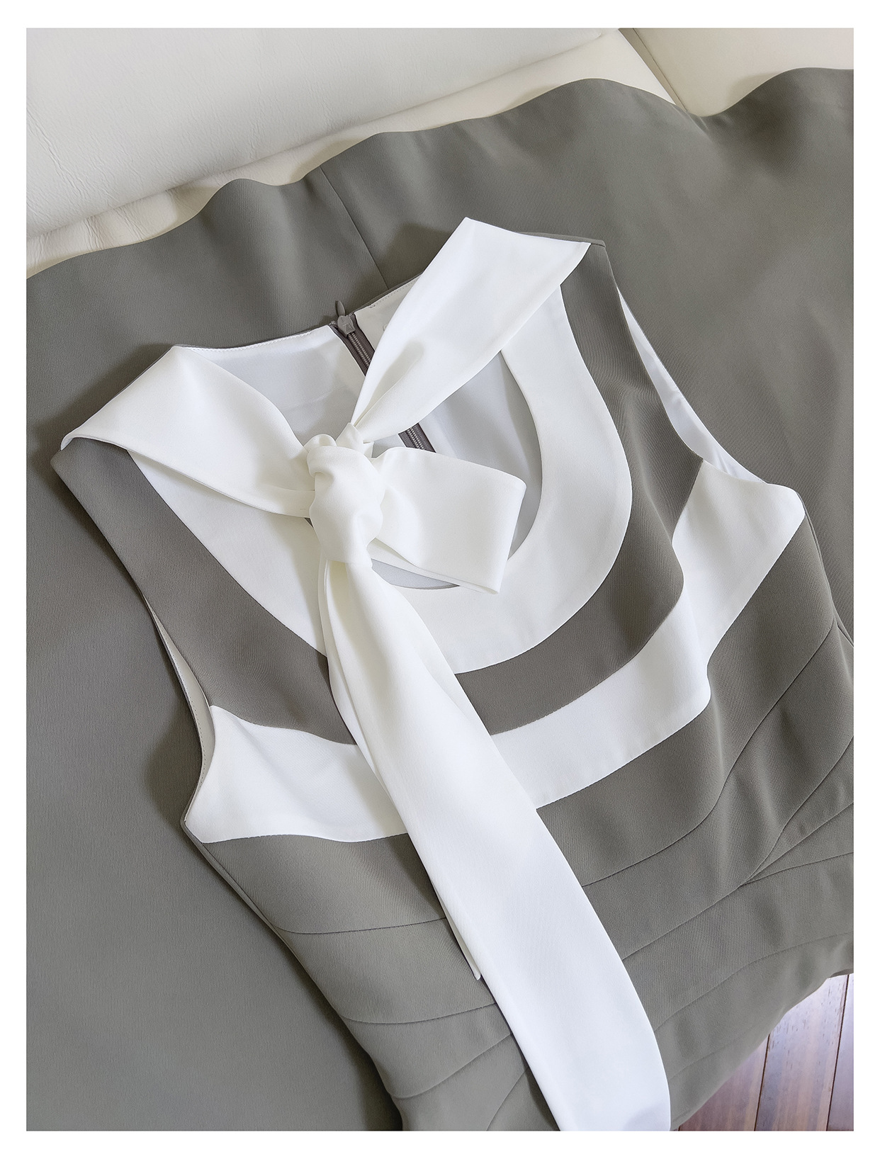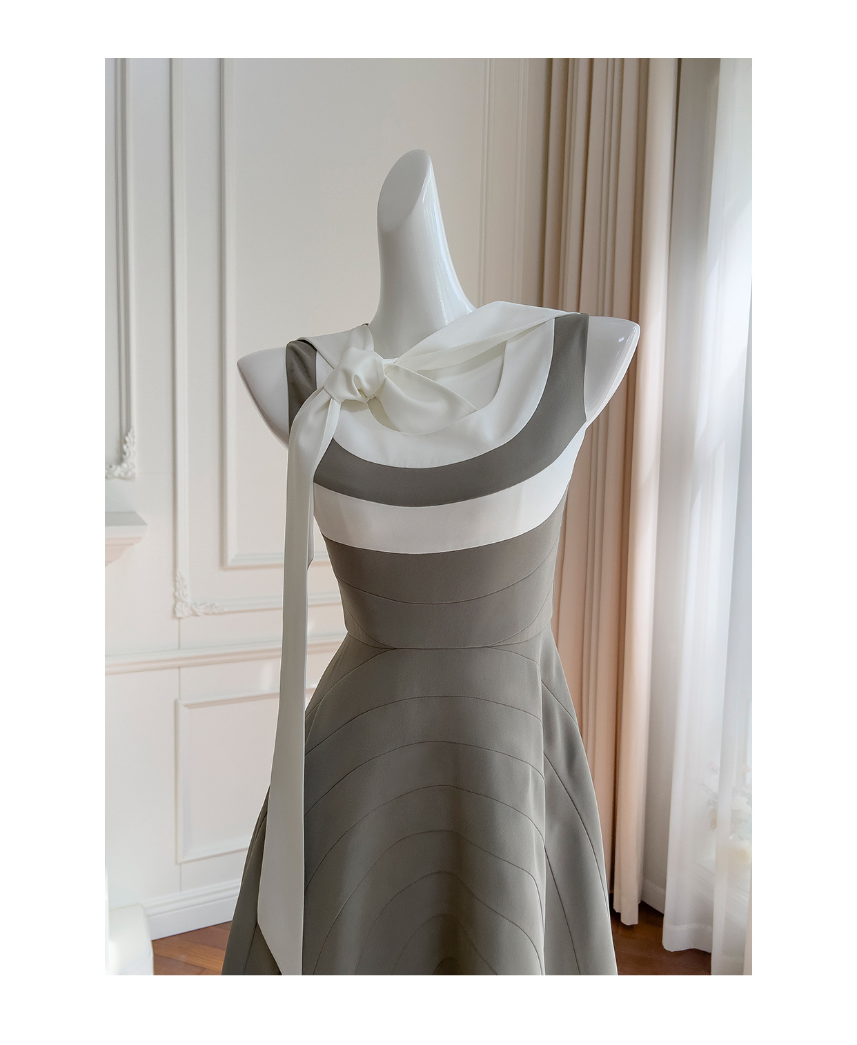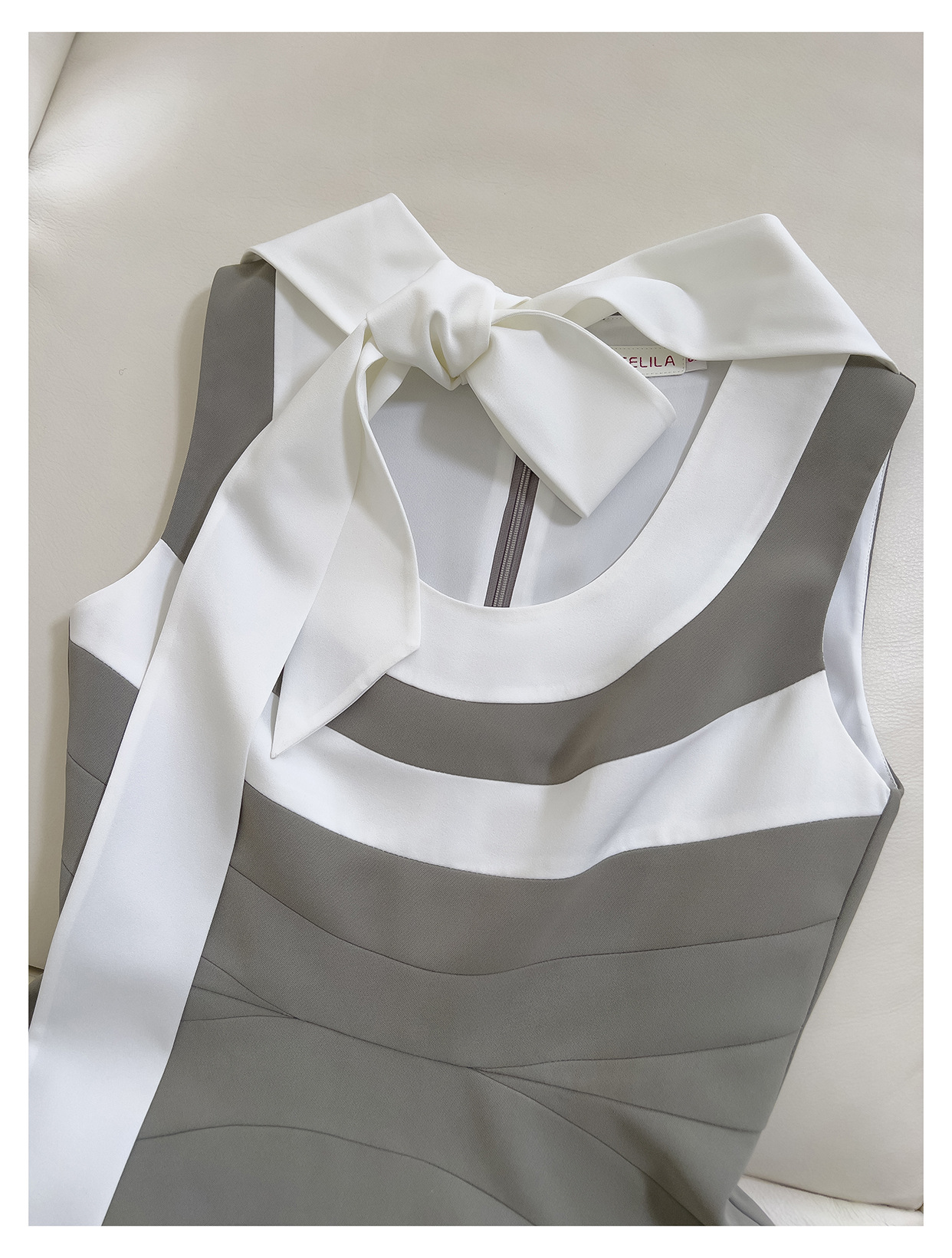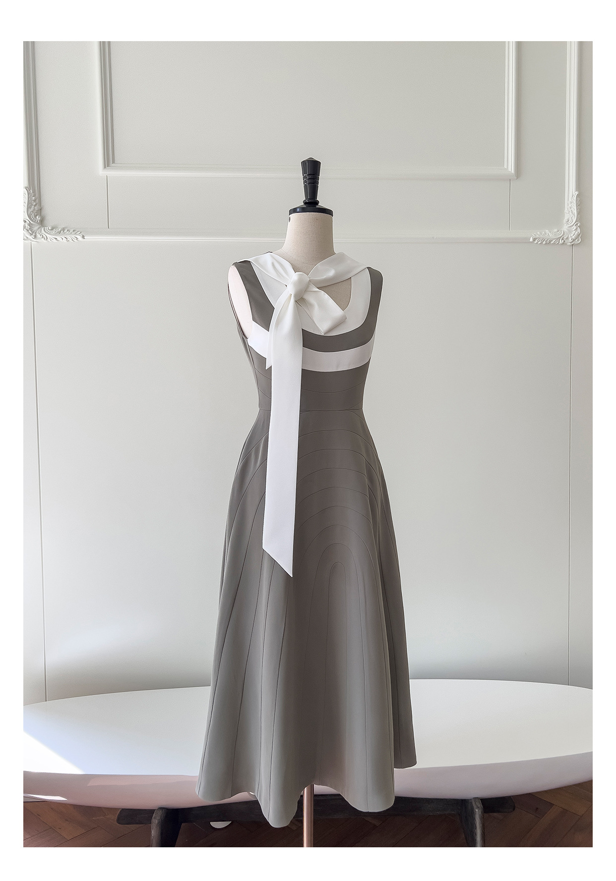 Robe sans manches de couleur contrastée rétro française