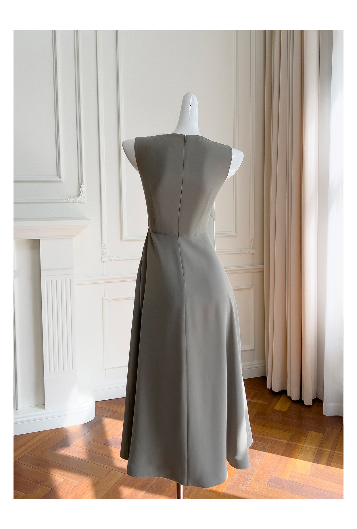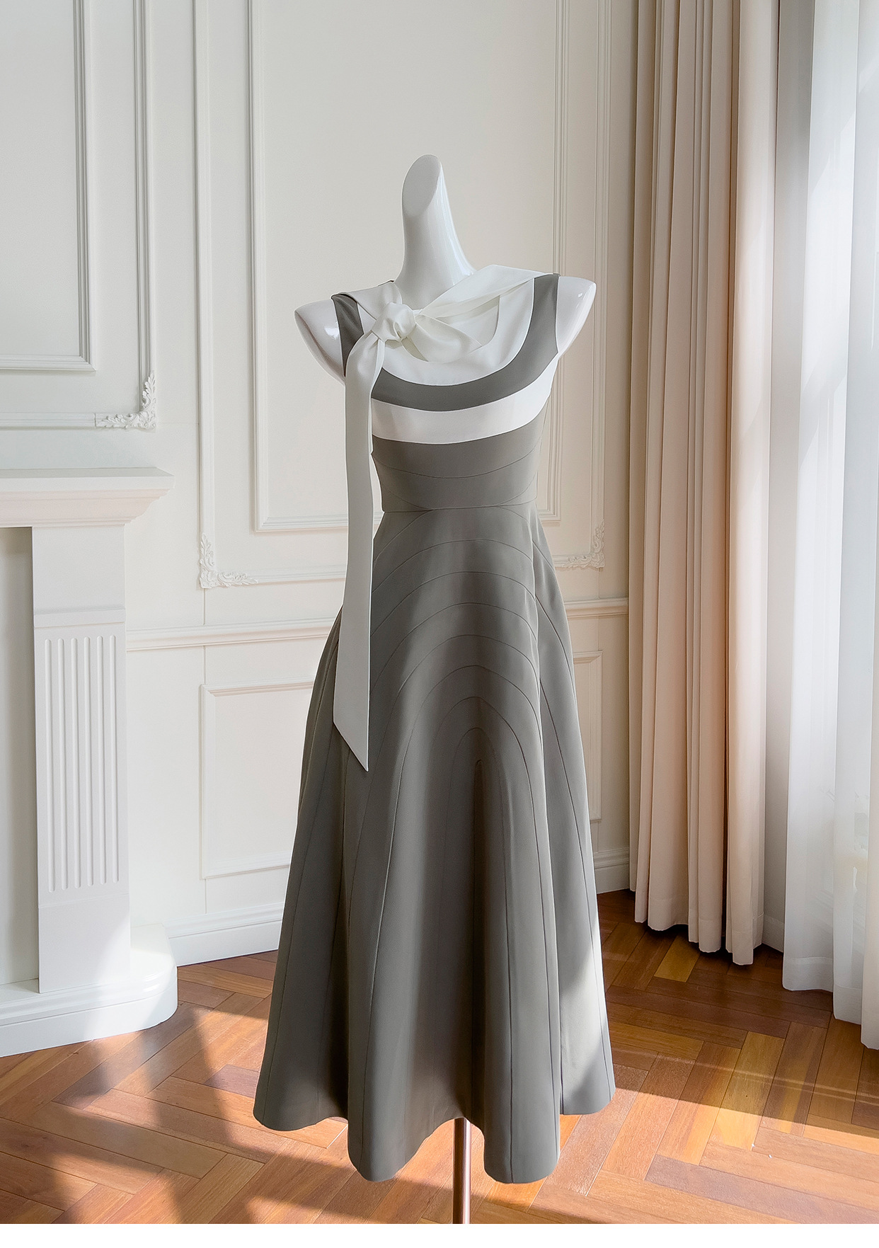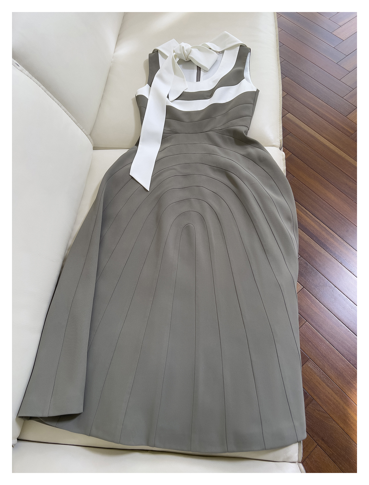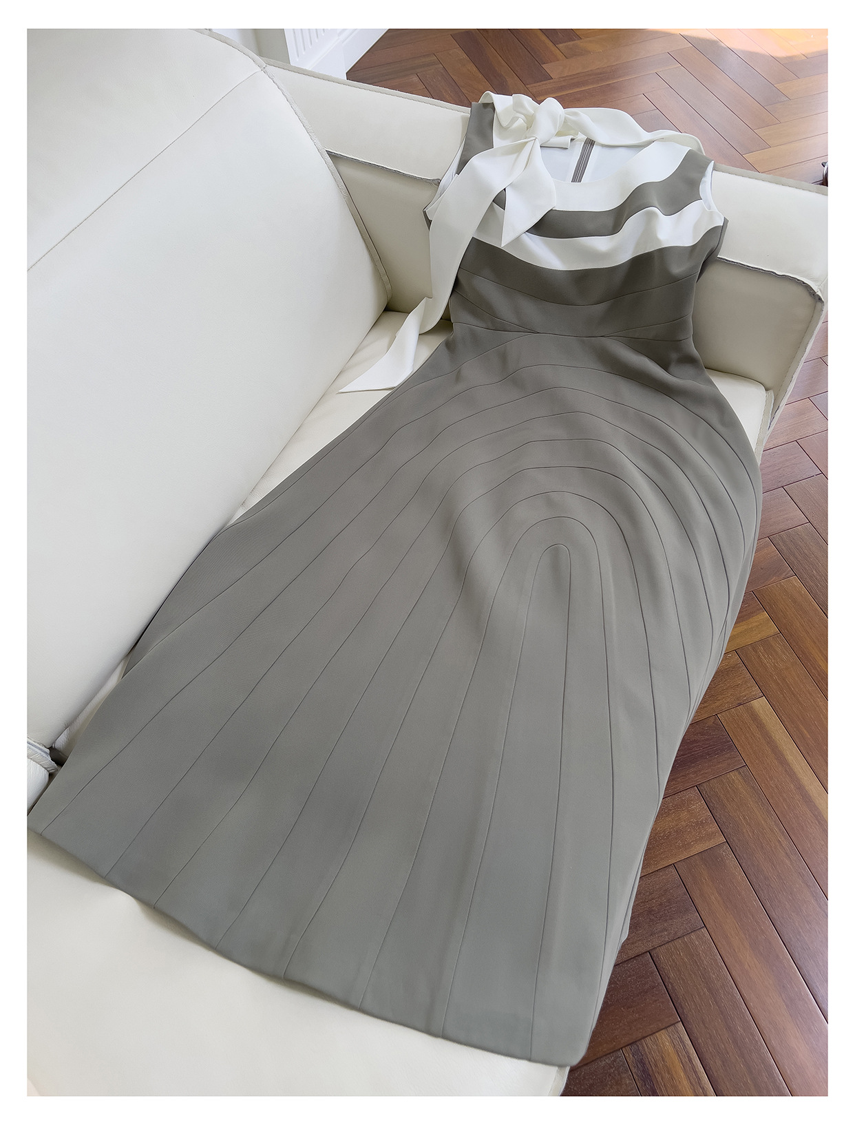 Robe sans manches de couleur contrastée rétro française