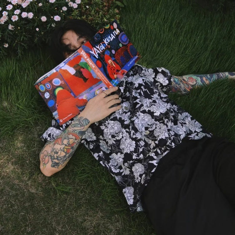 Chemise d'été hawaïenne à manches courtes, motif camélia noir et blanc, nouveau modèle.