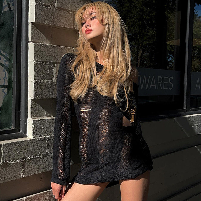 Robe en maille moulante à manches longues et dos nu ajouré