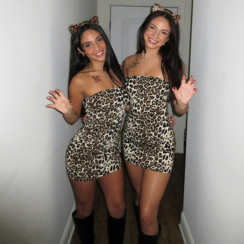 Robe moulante à épaules dénudées et imprimé léopard avec haut tube