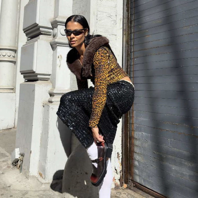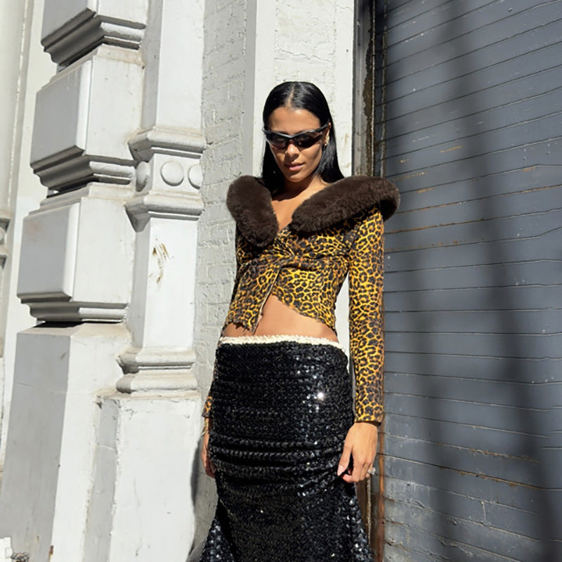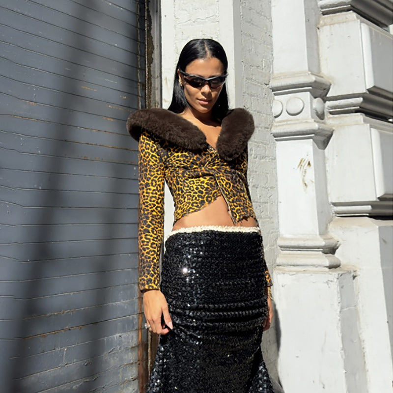 Haut Temperament à manches longues et coupe ajustée, dévoilant le ventre