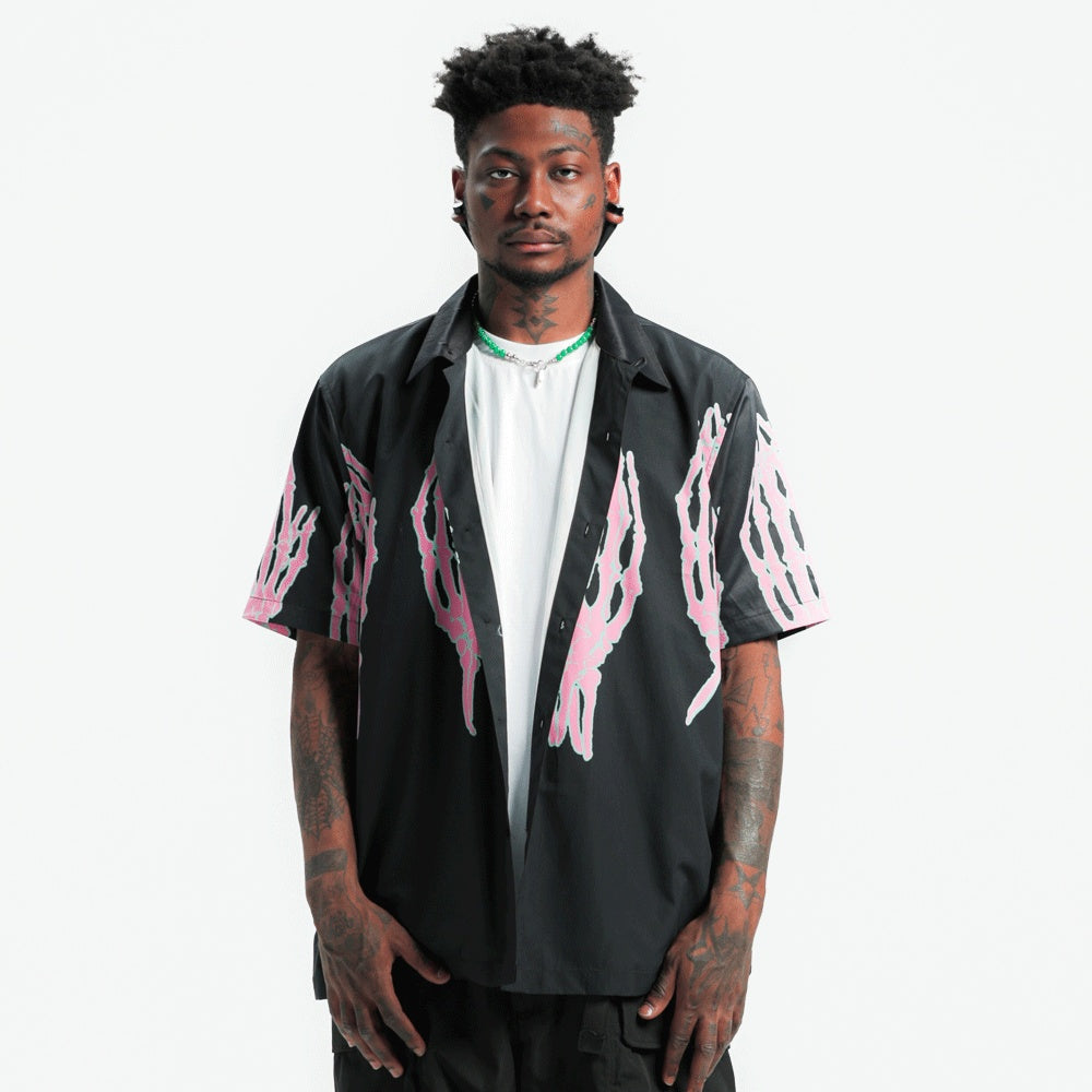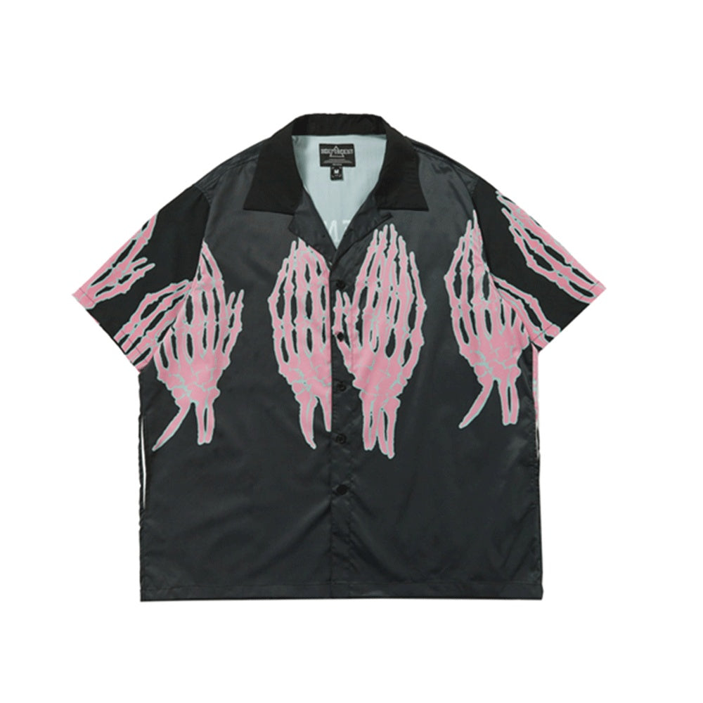 Chemise ample à revers avec imprimé main fantôme et crâne