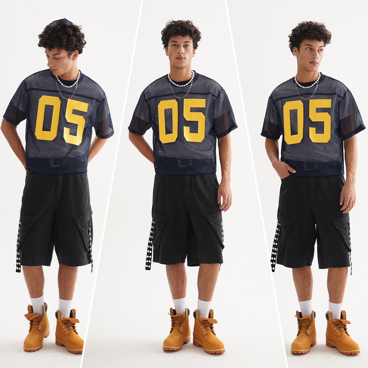 T-shirt ample à manches courtes en maille polygonale, uniforme de baseball en maille