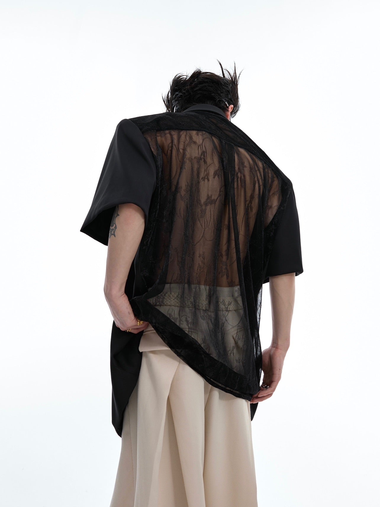 Profil en maille cousue, épaules rembourrées amples, manches courtes