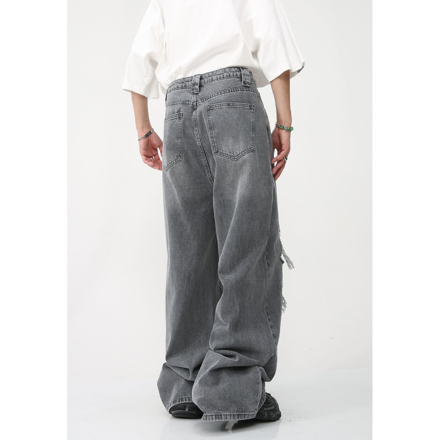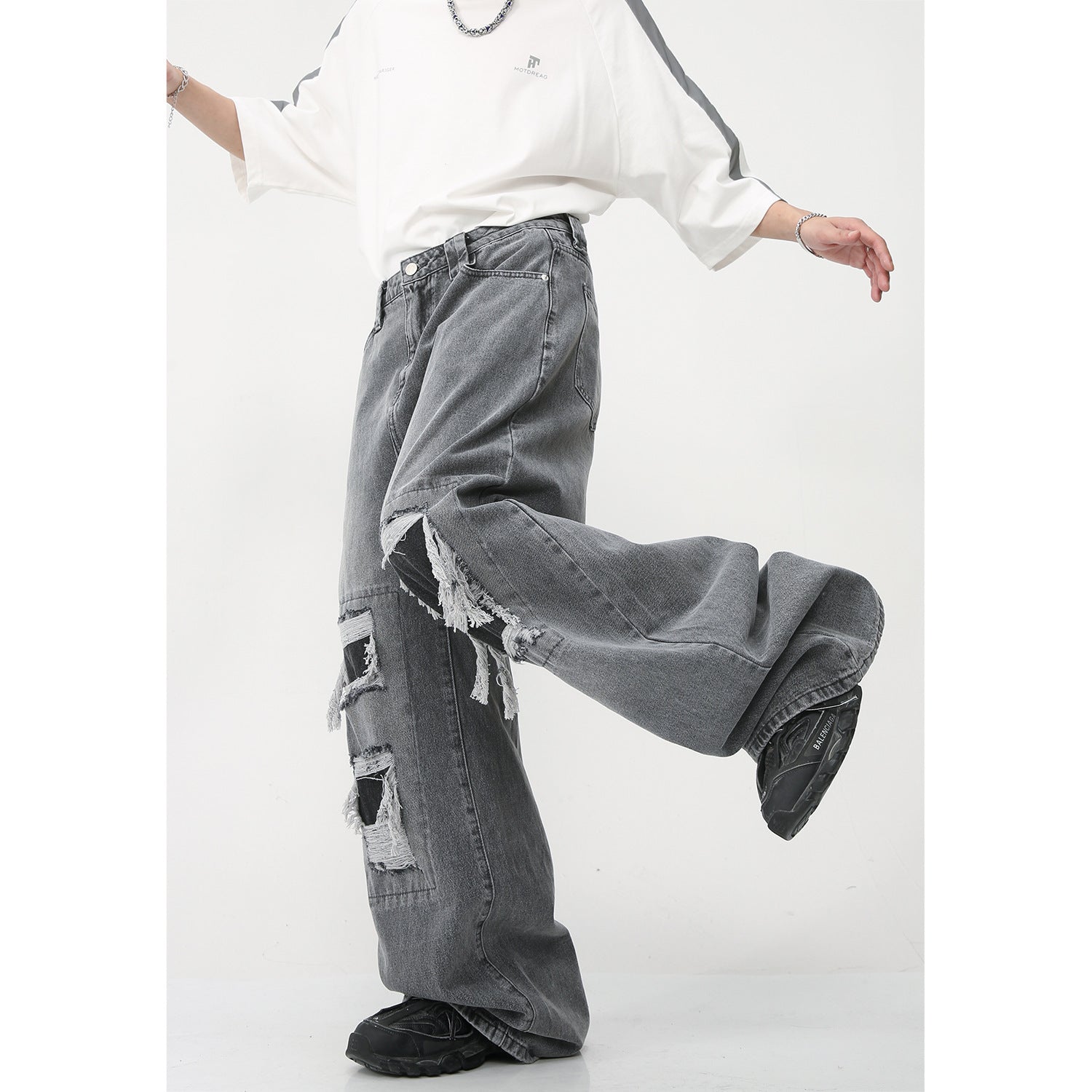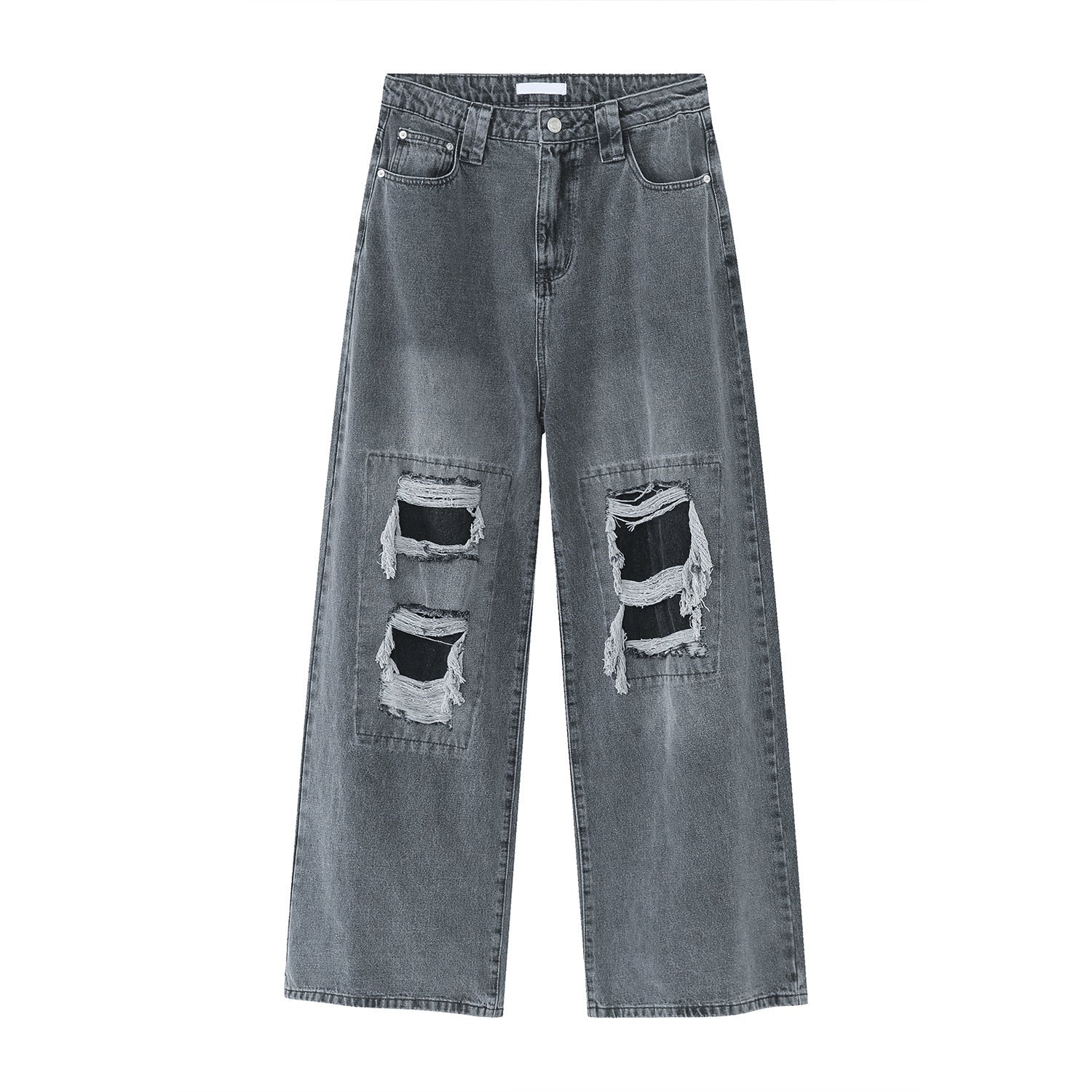 Nouveau jean ample à jambe large style américain High Street avec trous et patchs