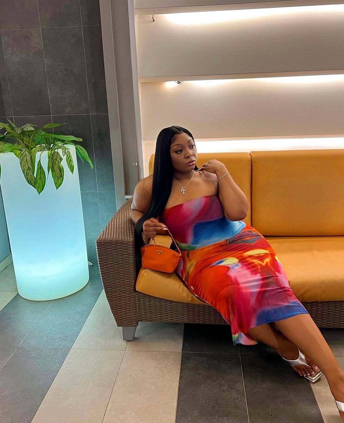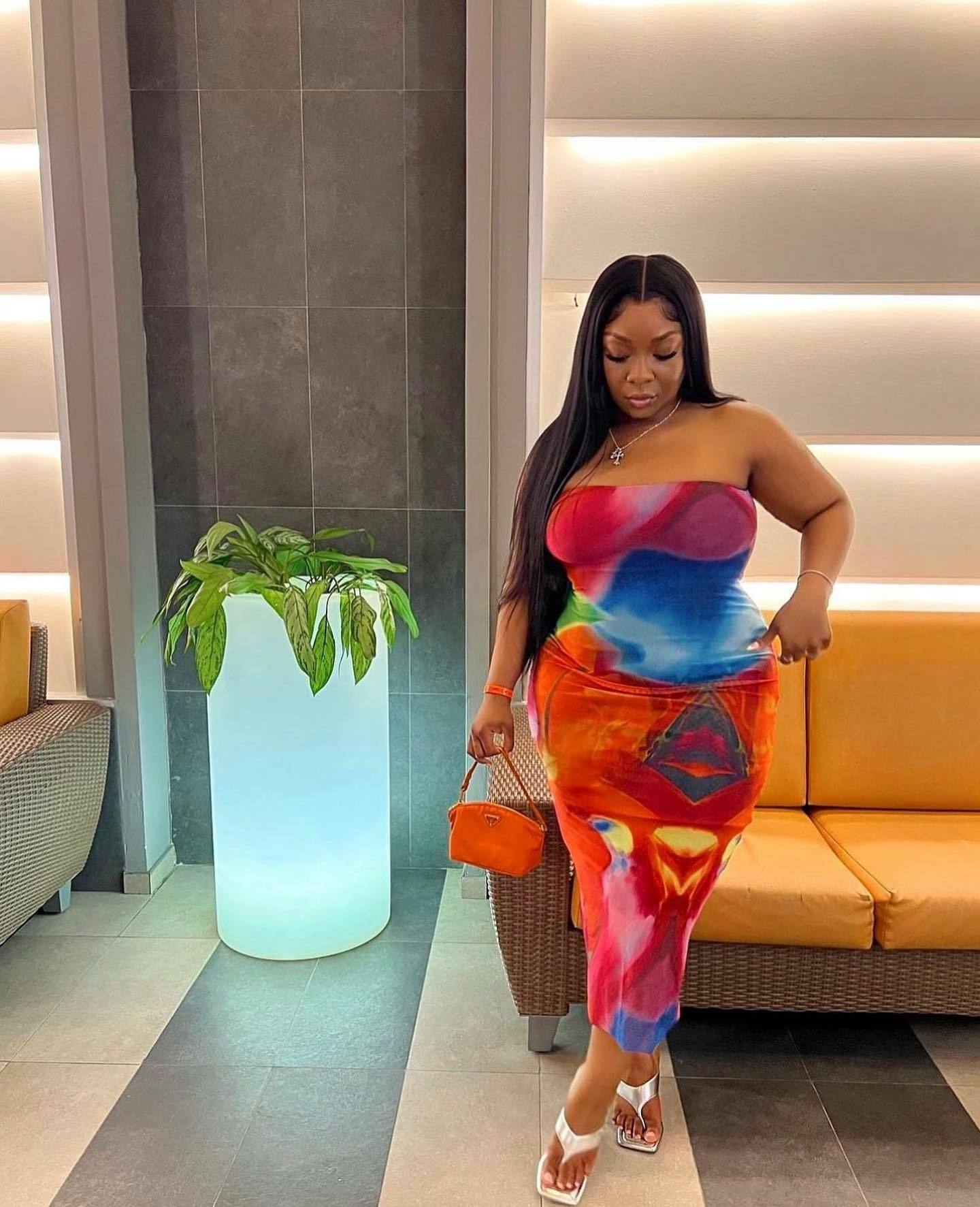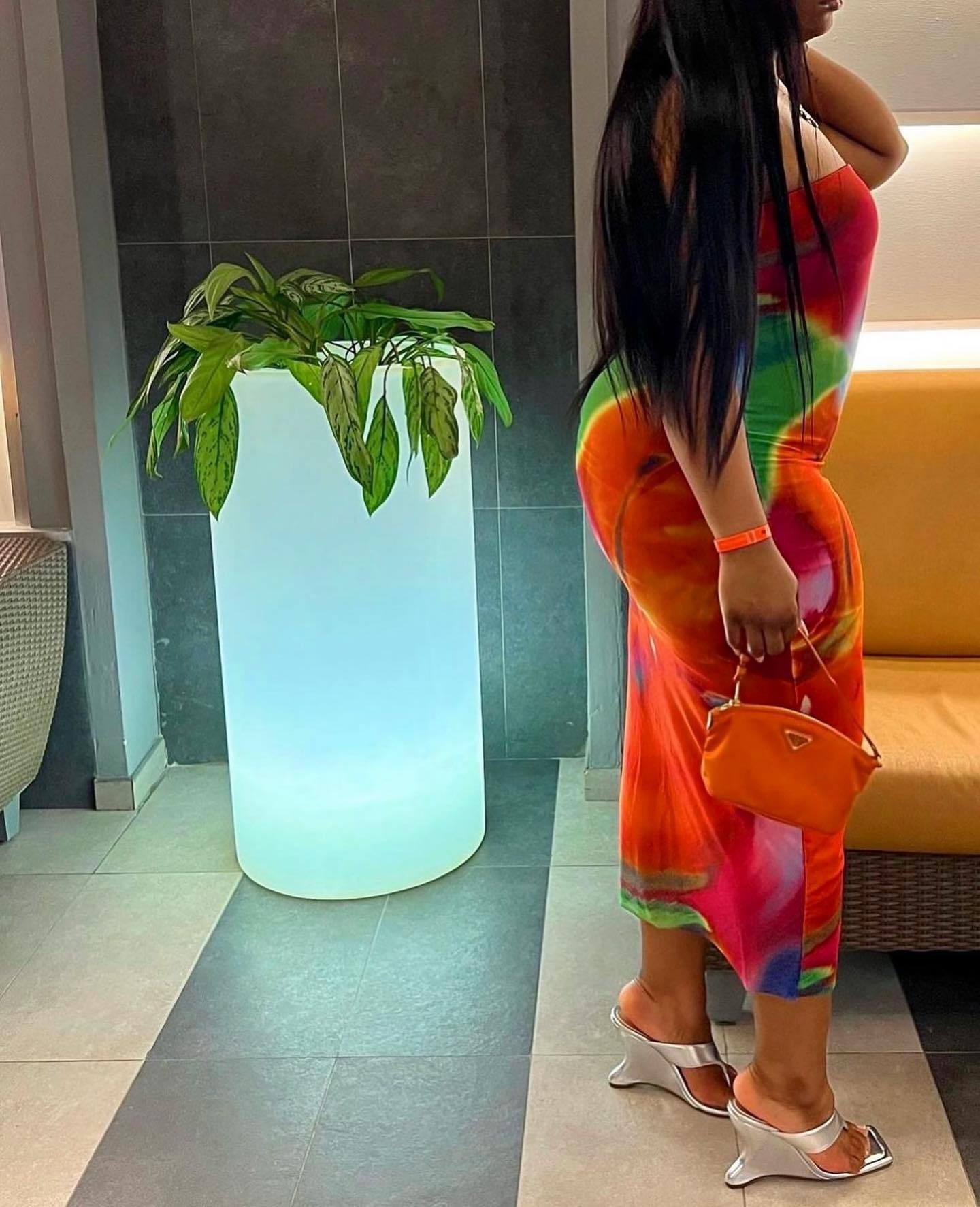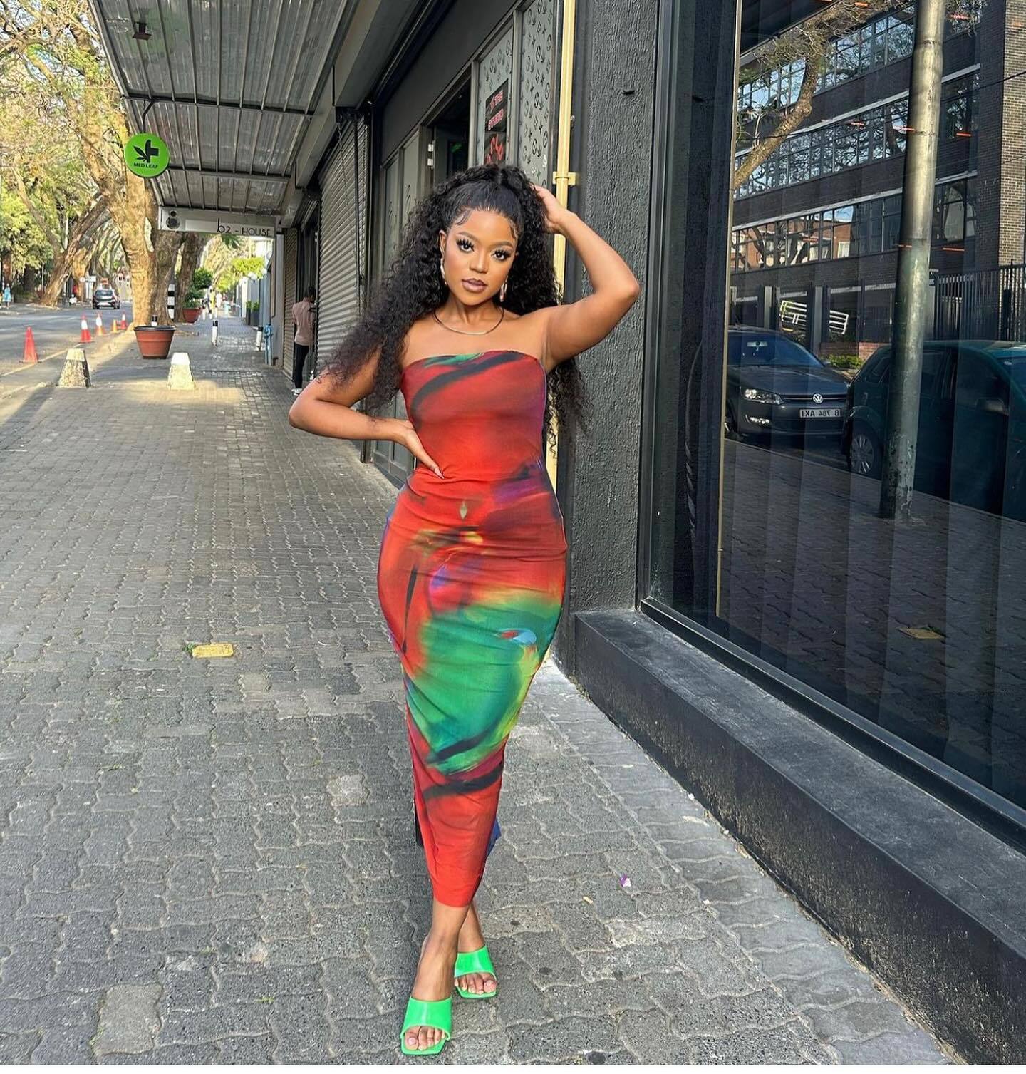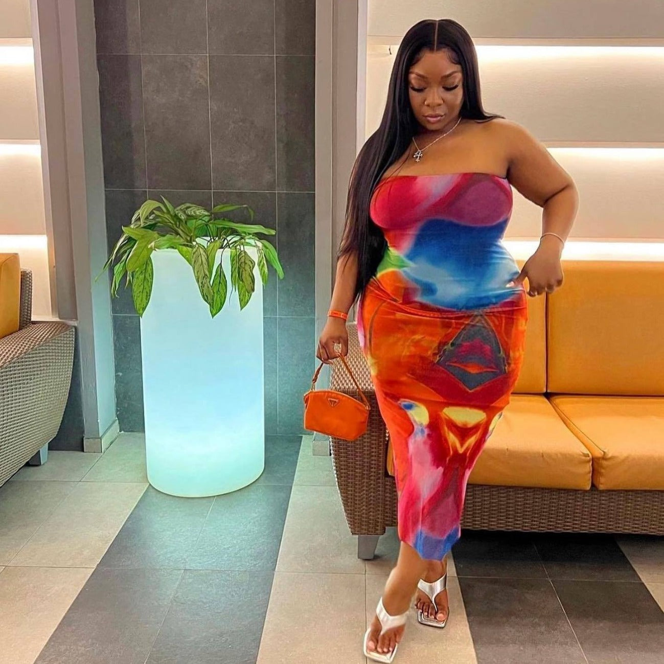 Robe tube imprimée à col dénudé, taille ajustée, dos nu, sans manches