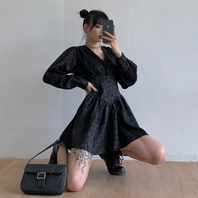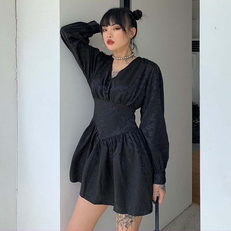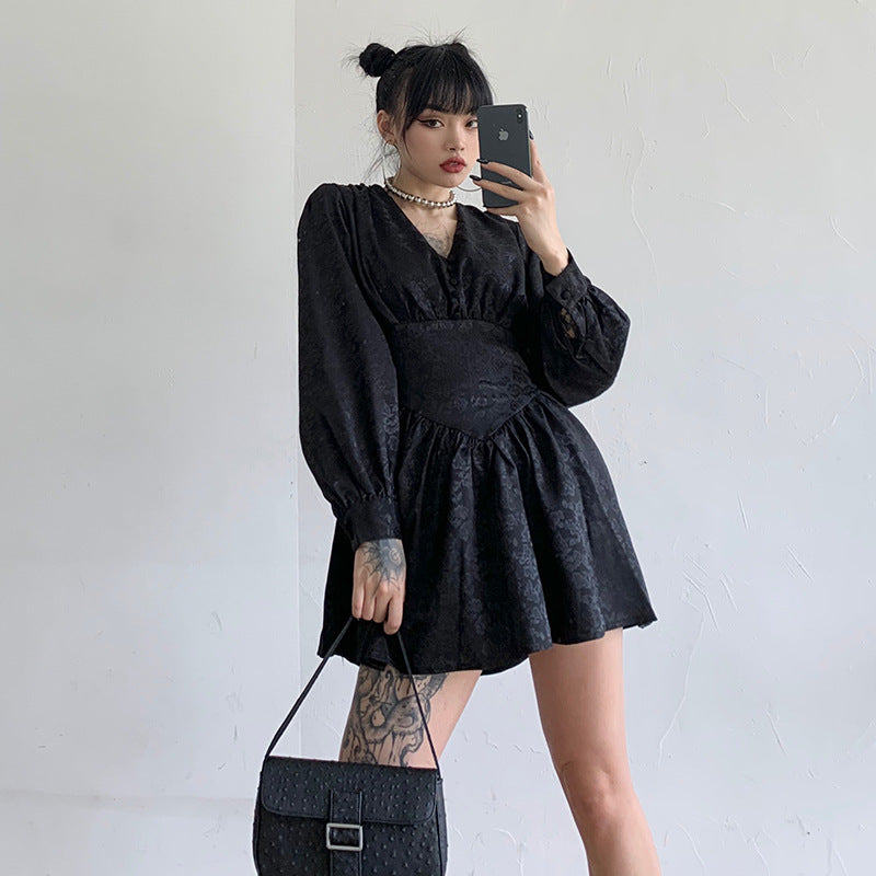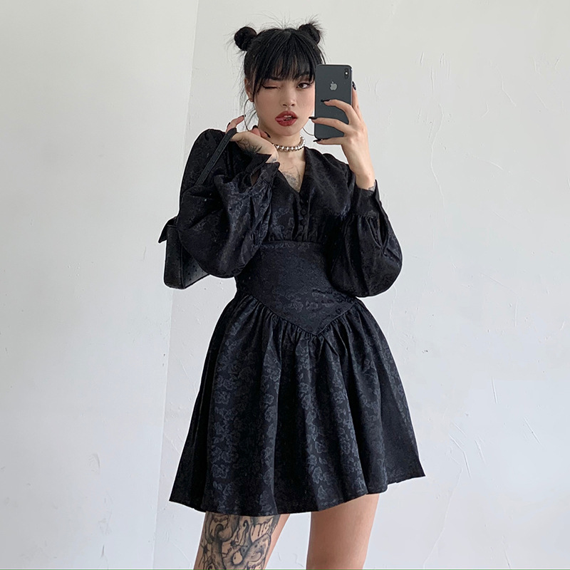 Pavillon européen et américain style palais rétro manches lanternes col en V croisé taille