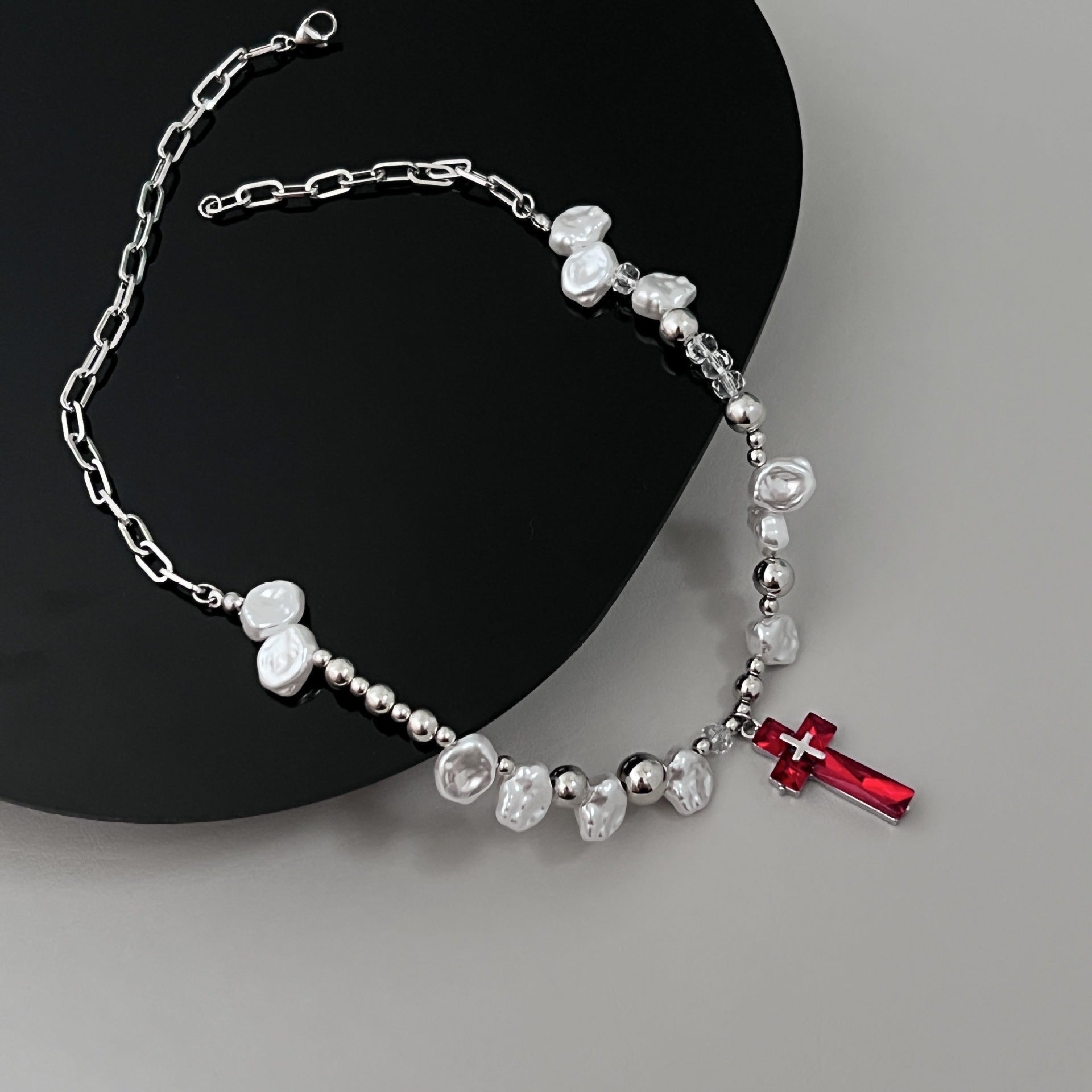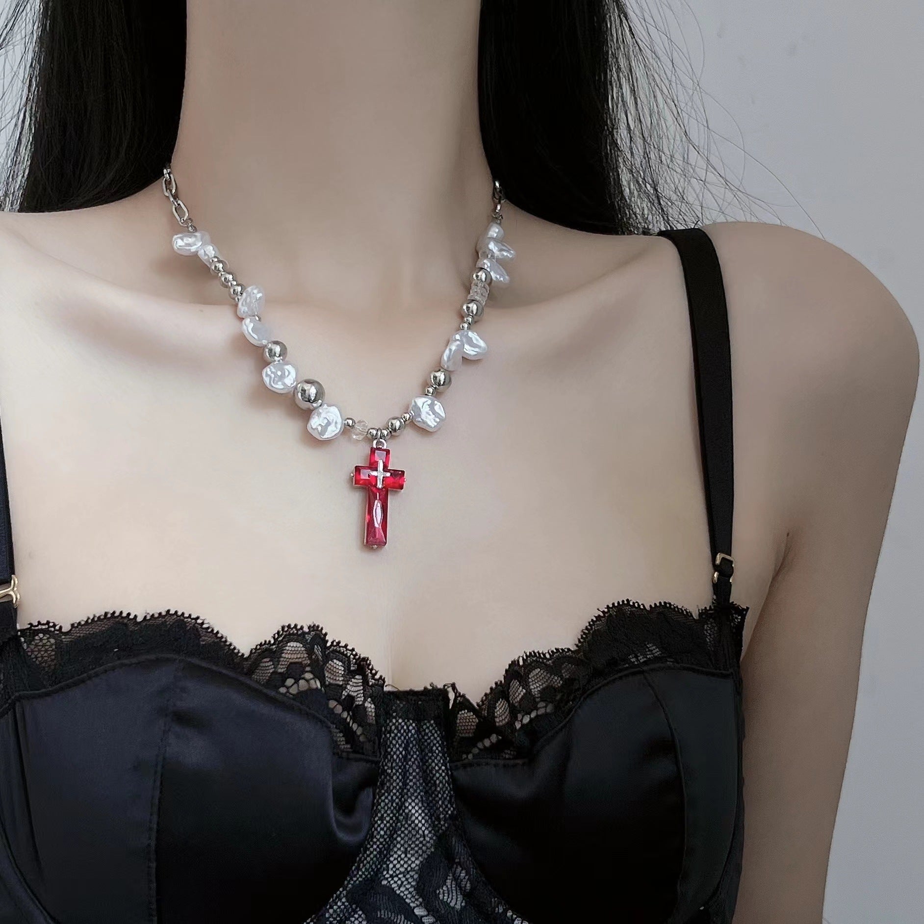 Éléments populaires : croix, métal, perle, strass, harmonie des couleurs, chaîne