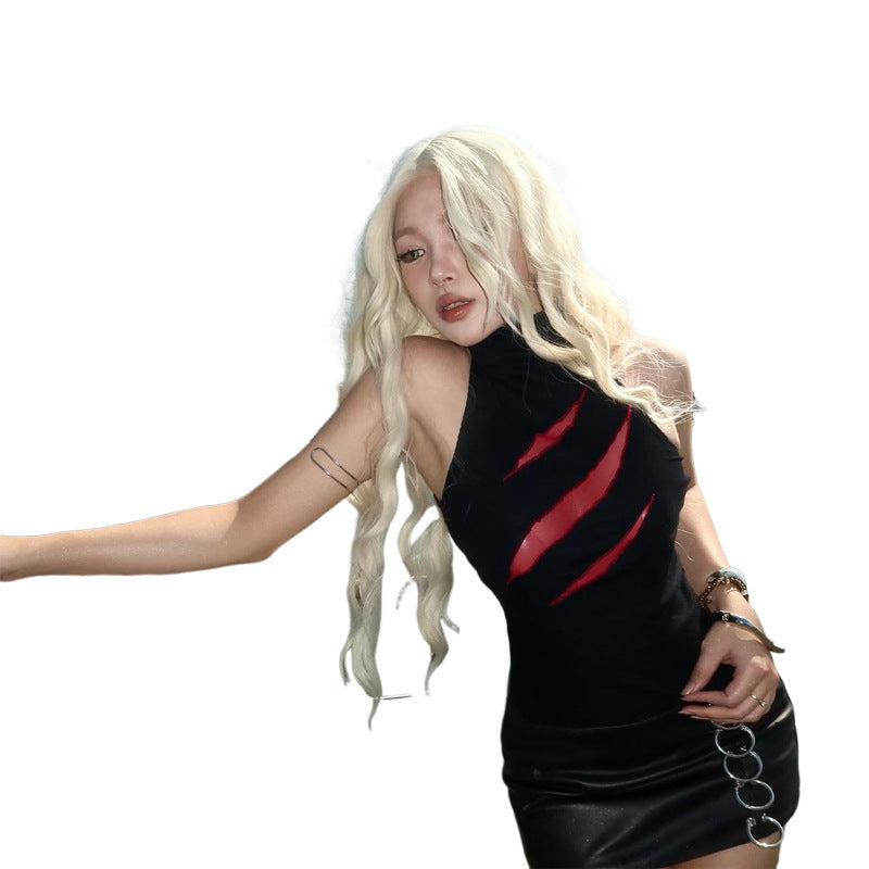 Gilet sans manches personnalisé, style streetwear, col montant, couleurs contrastées, coupe ajustée, pour femme branchée.