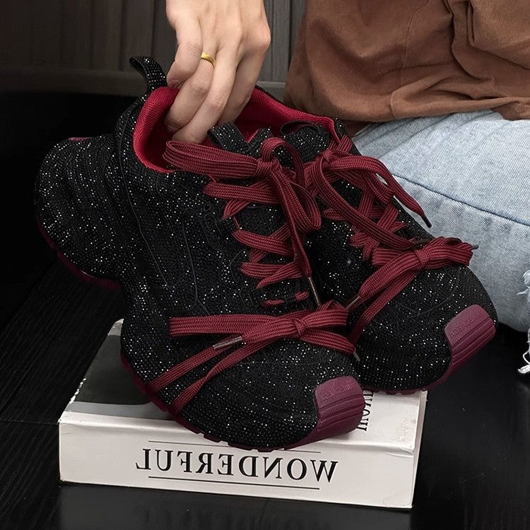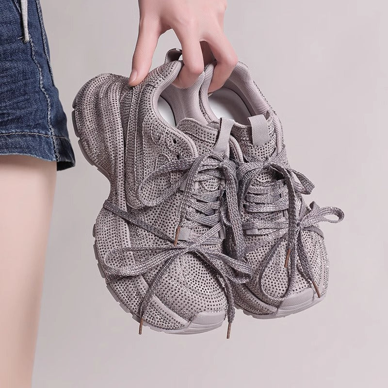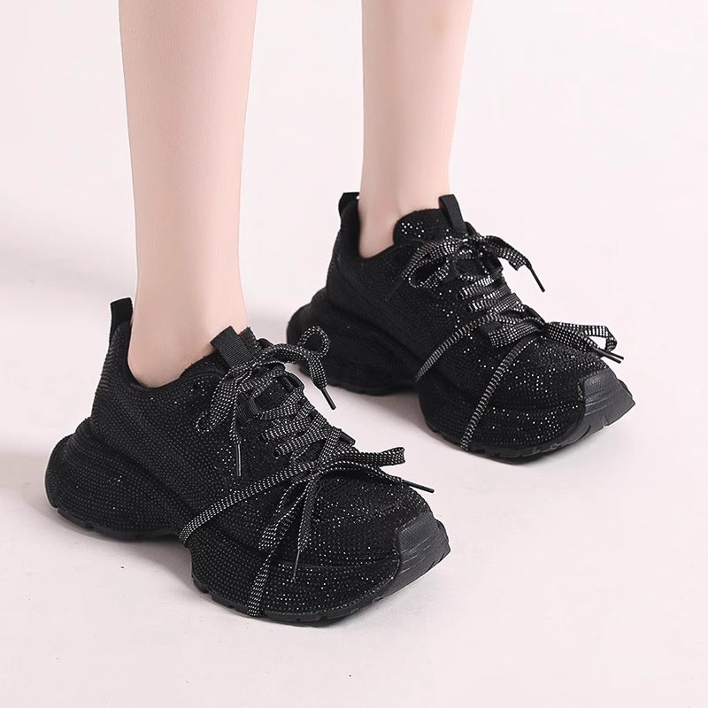 Chaussures à plateforme neuves respirantes avec strass et brides en diamant