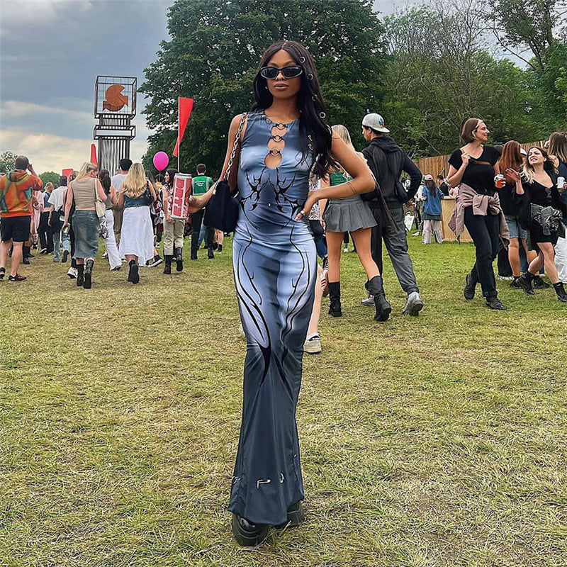 Robe moulante taille haute sans manches pour femme