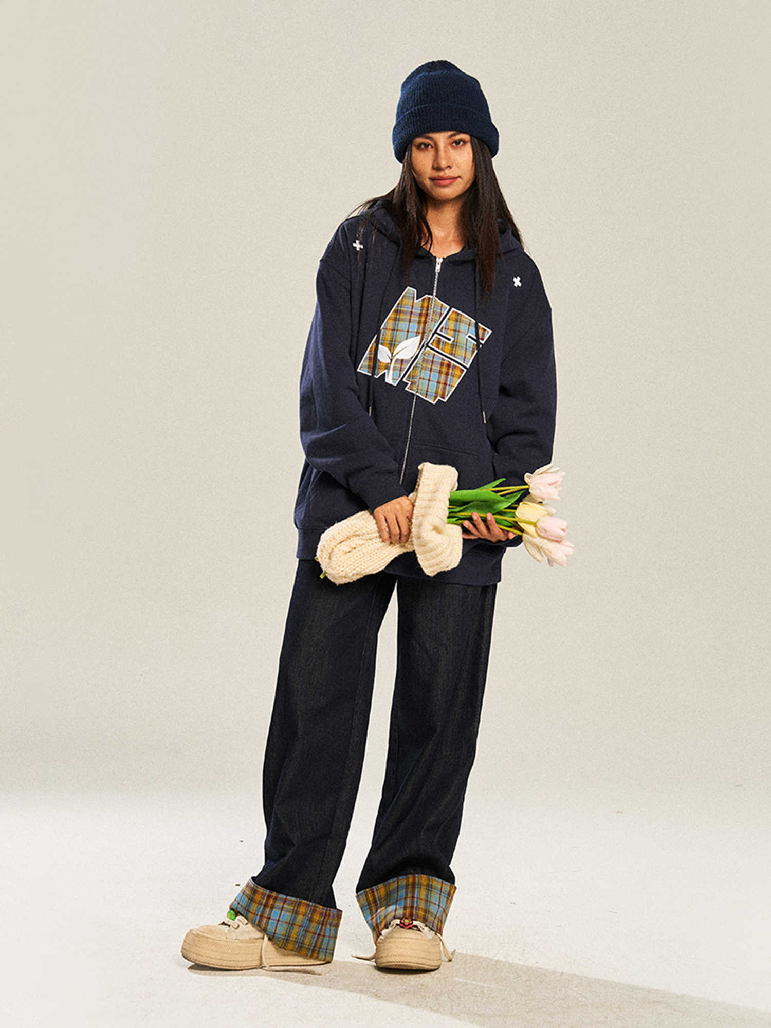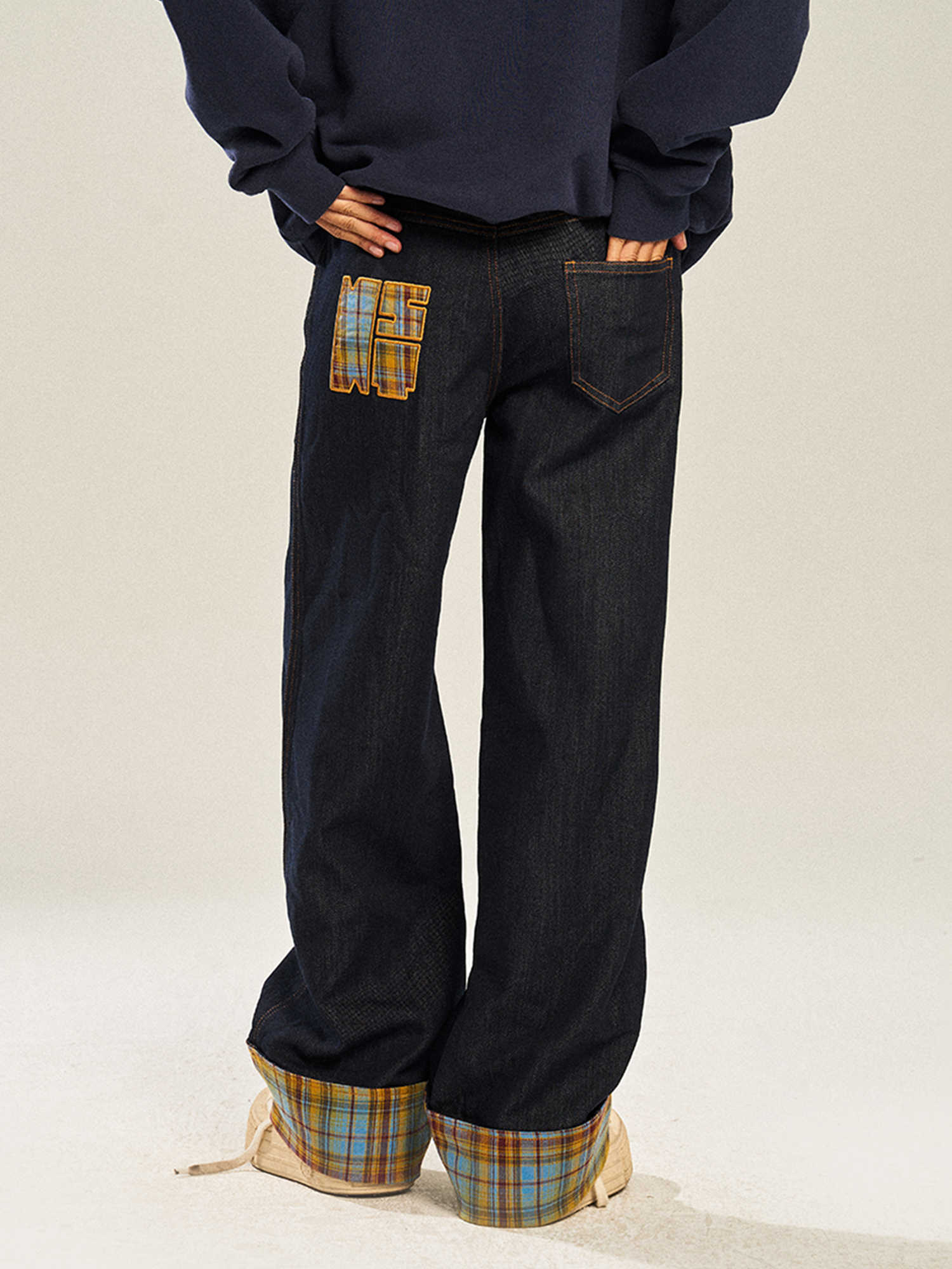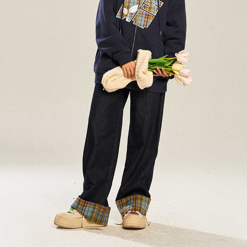 Jean décontracté à carreaux rétro, coupe droite et jambe large