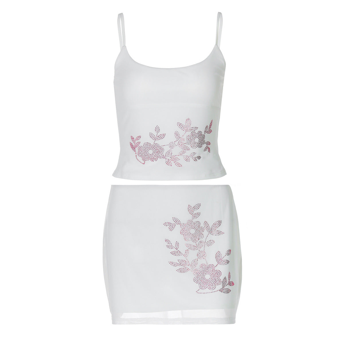 Tailleur jupe slim à bretelles strass pour fille sexy