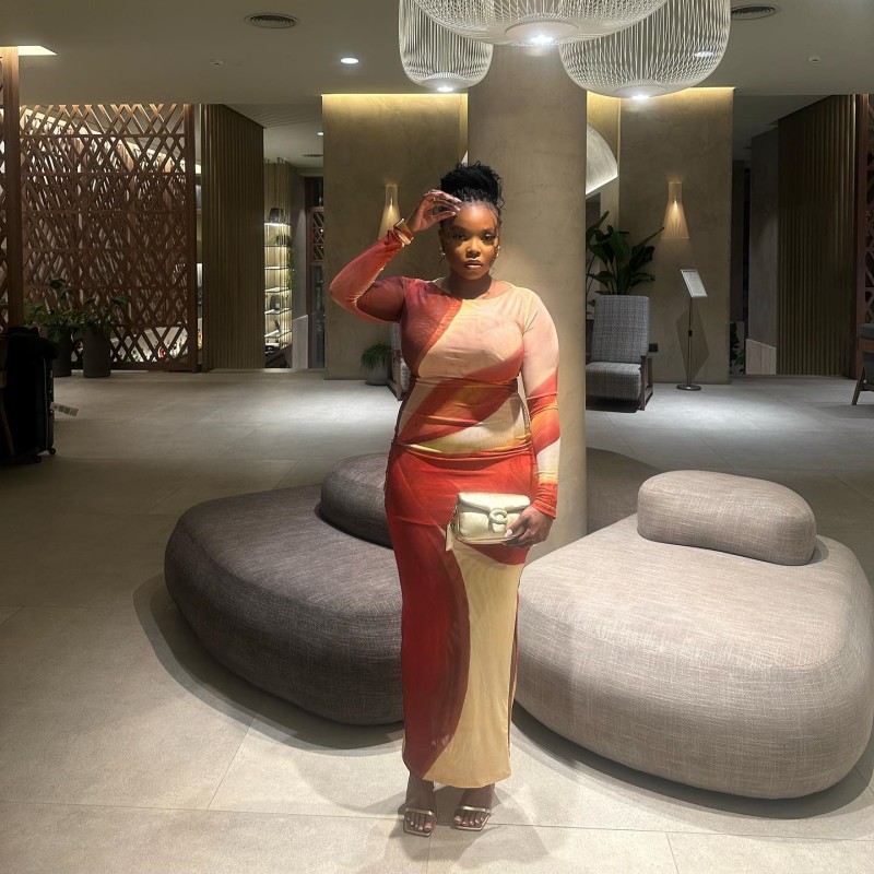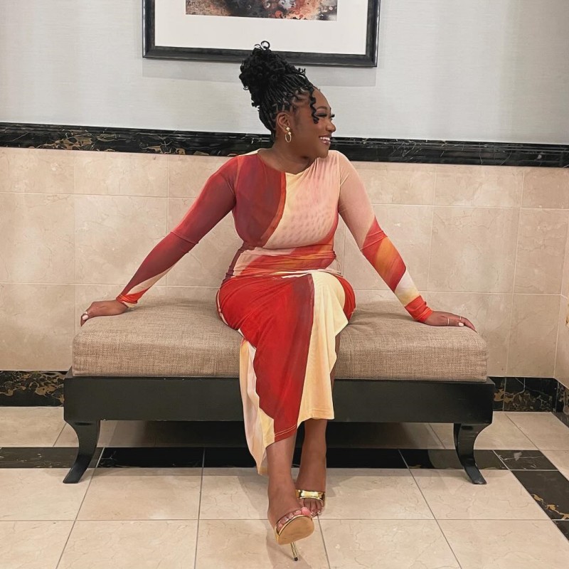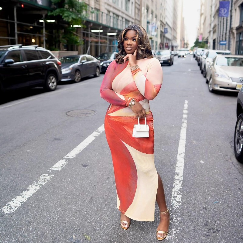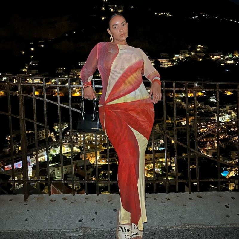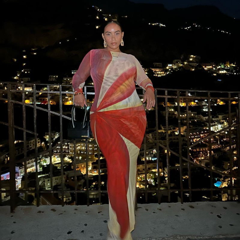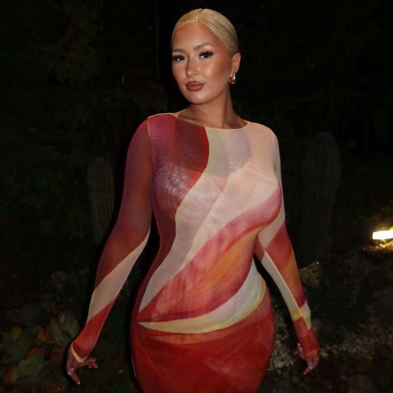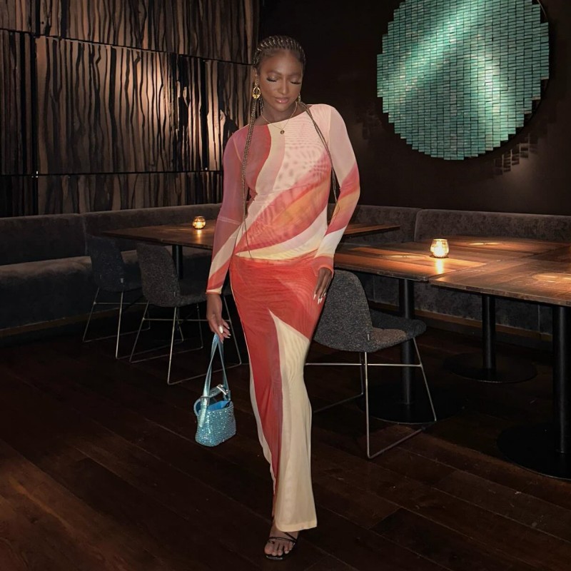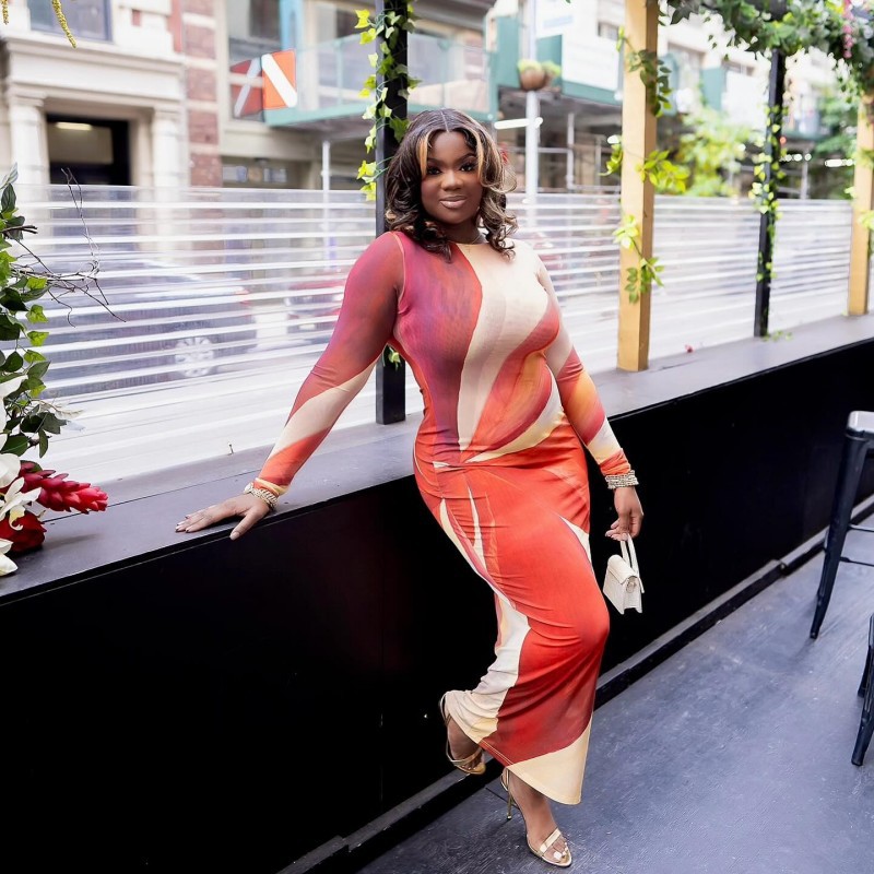 Robe longue ajustée à col rond et manches longues en maille à imprimé floral