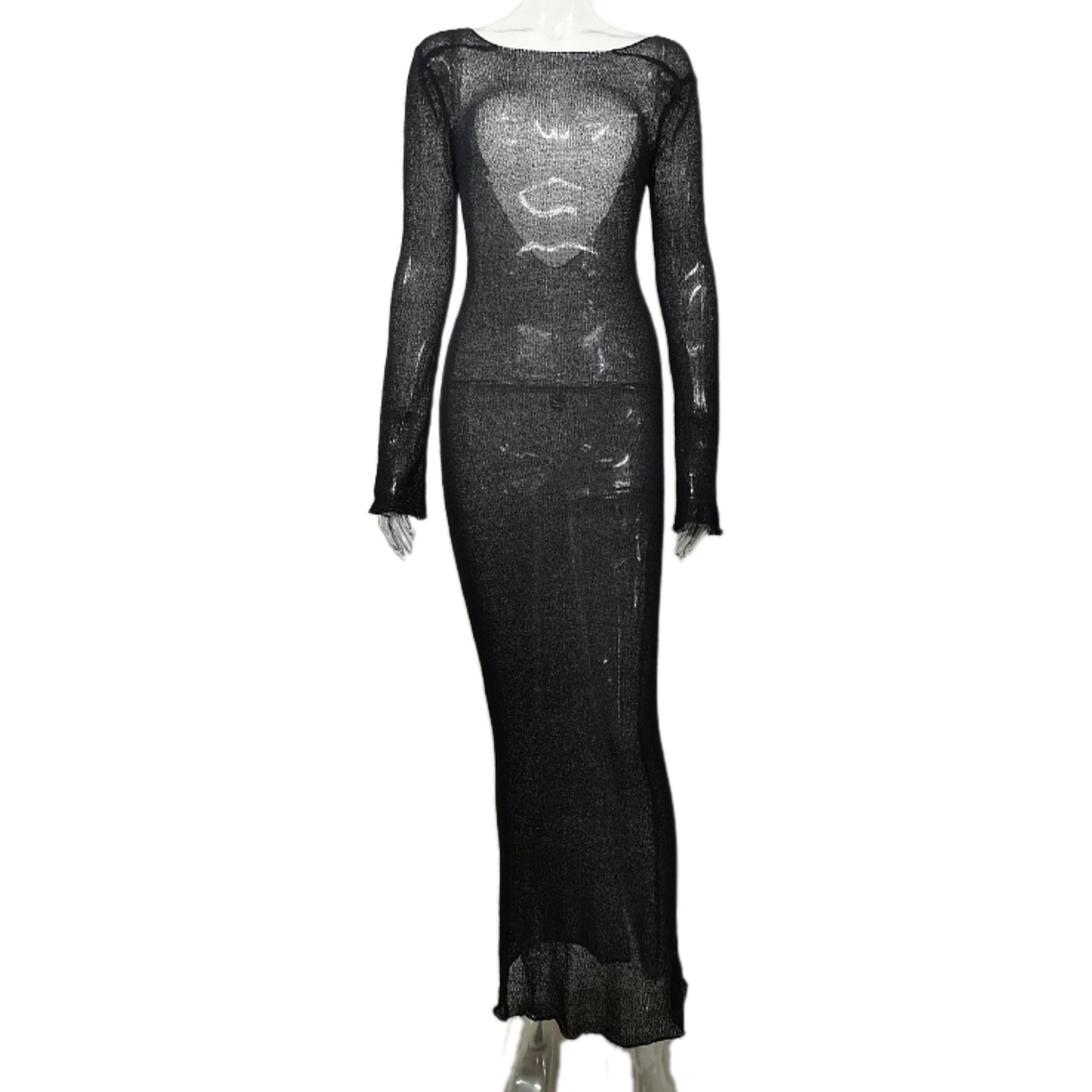 Chemisier de vacances transparent, robe longue en tricot à manches longues et dos nu