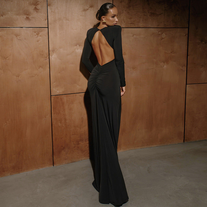 Robe fourreau élégante et sexy dos nu à manches longues et coupe ajustée pour femme