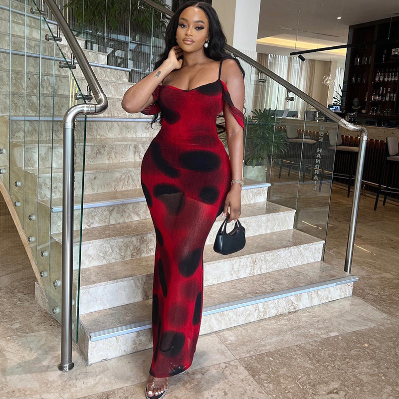 Robe sexy à imprimé floral et manches longues, dos nu, jupe à la hanche, pull