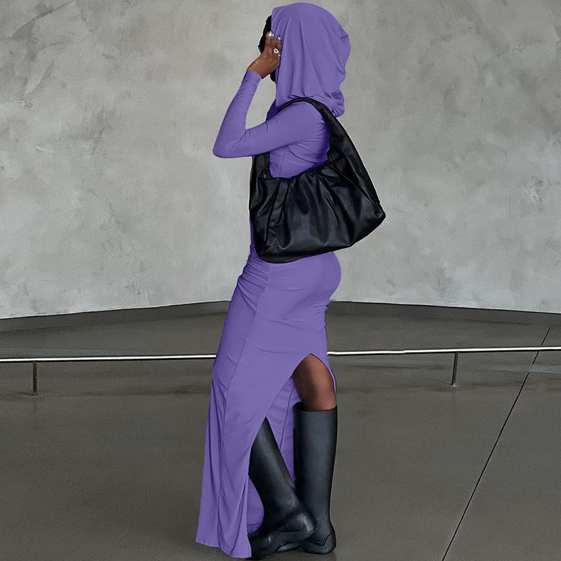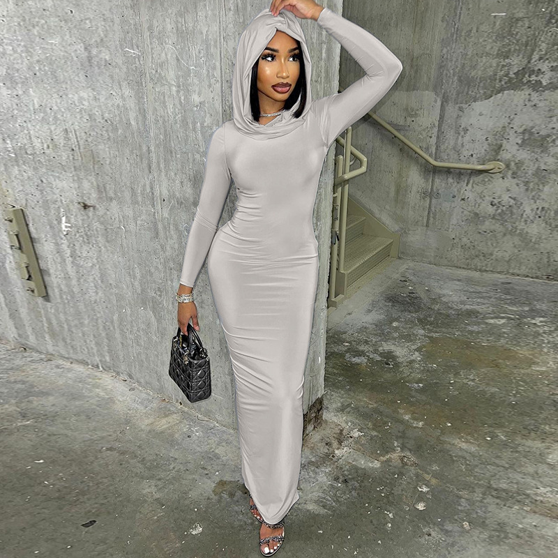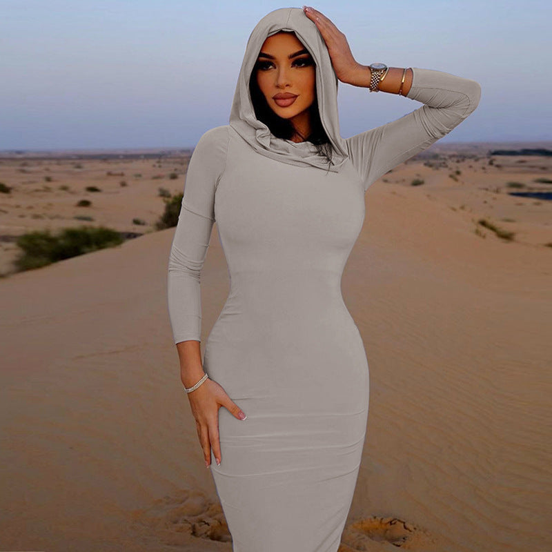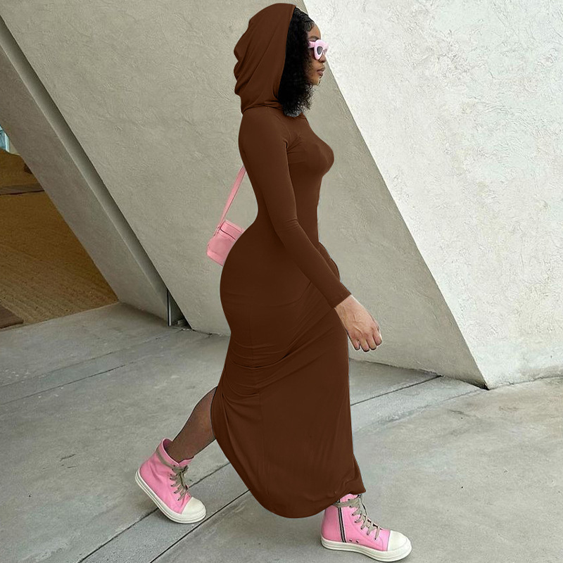 Robe à capuche à manches longues et coupe ajustée