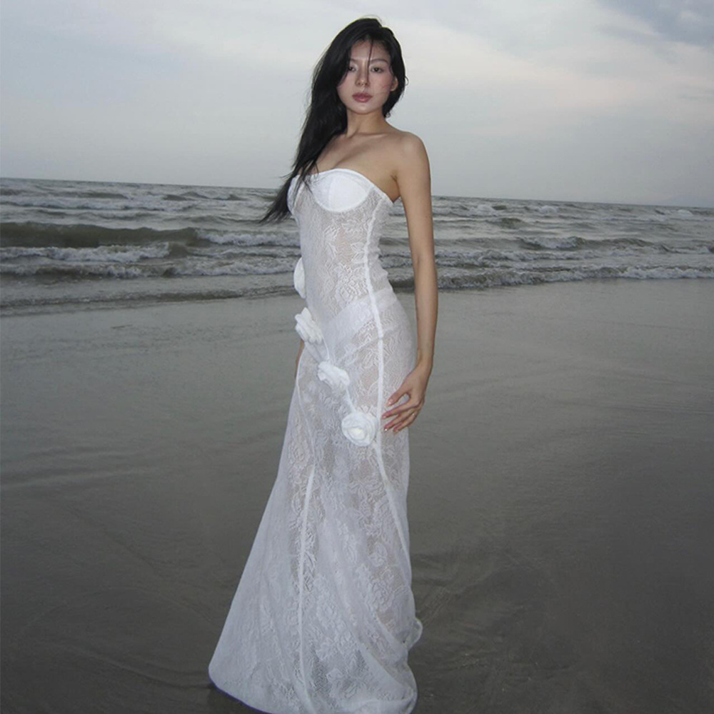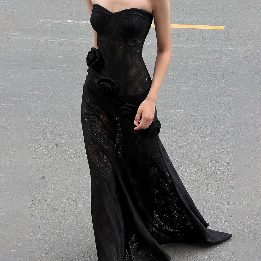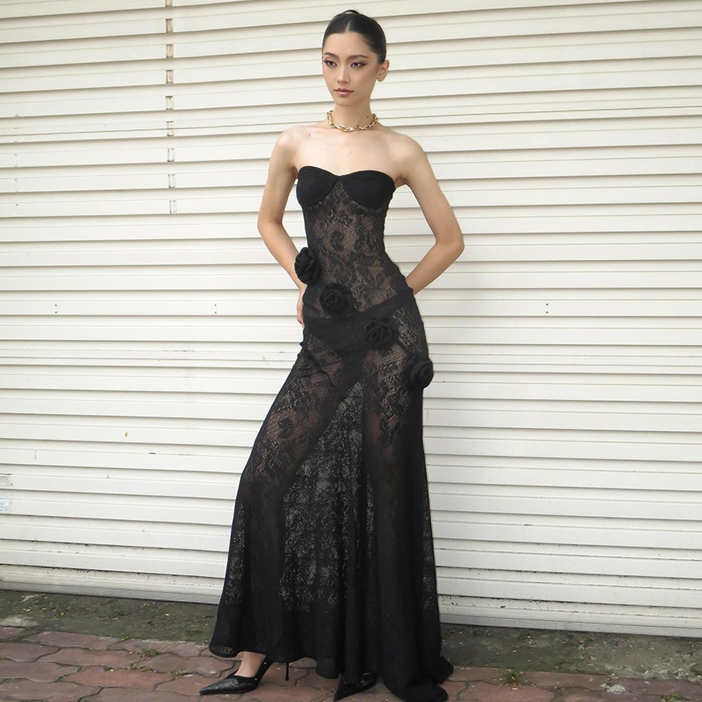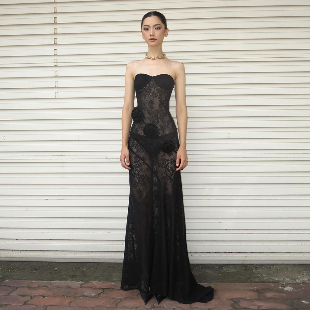 Robe bustier moulante en dentelle transparente, collection automne