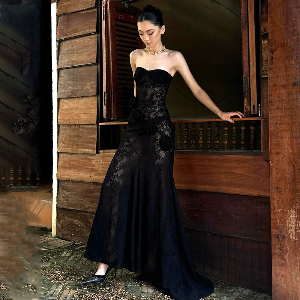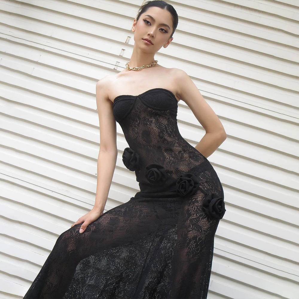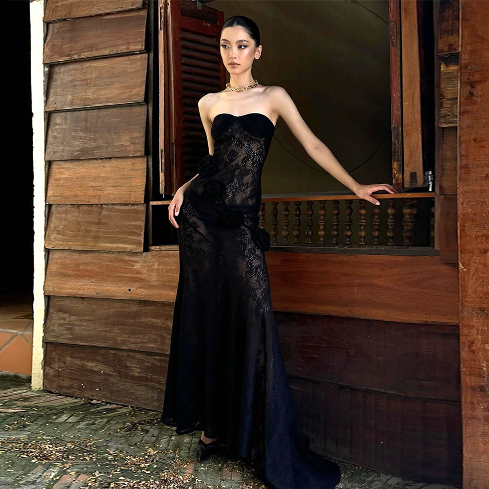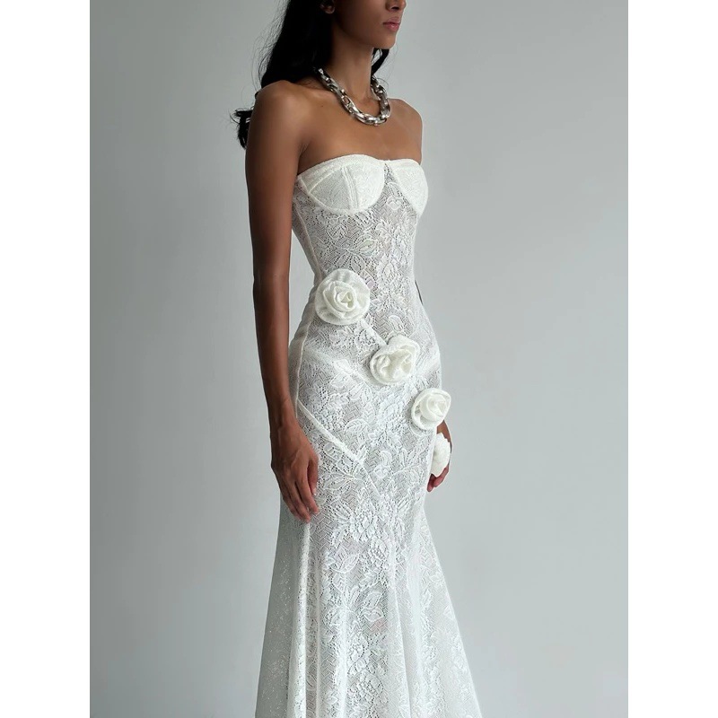Robe bustier moulante en dentelle transparente, collection automne