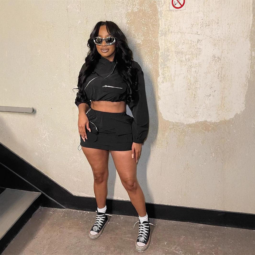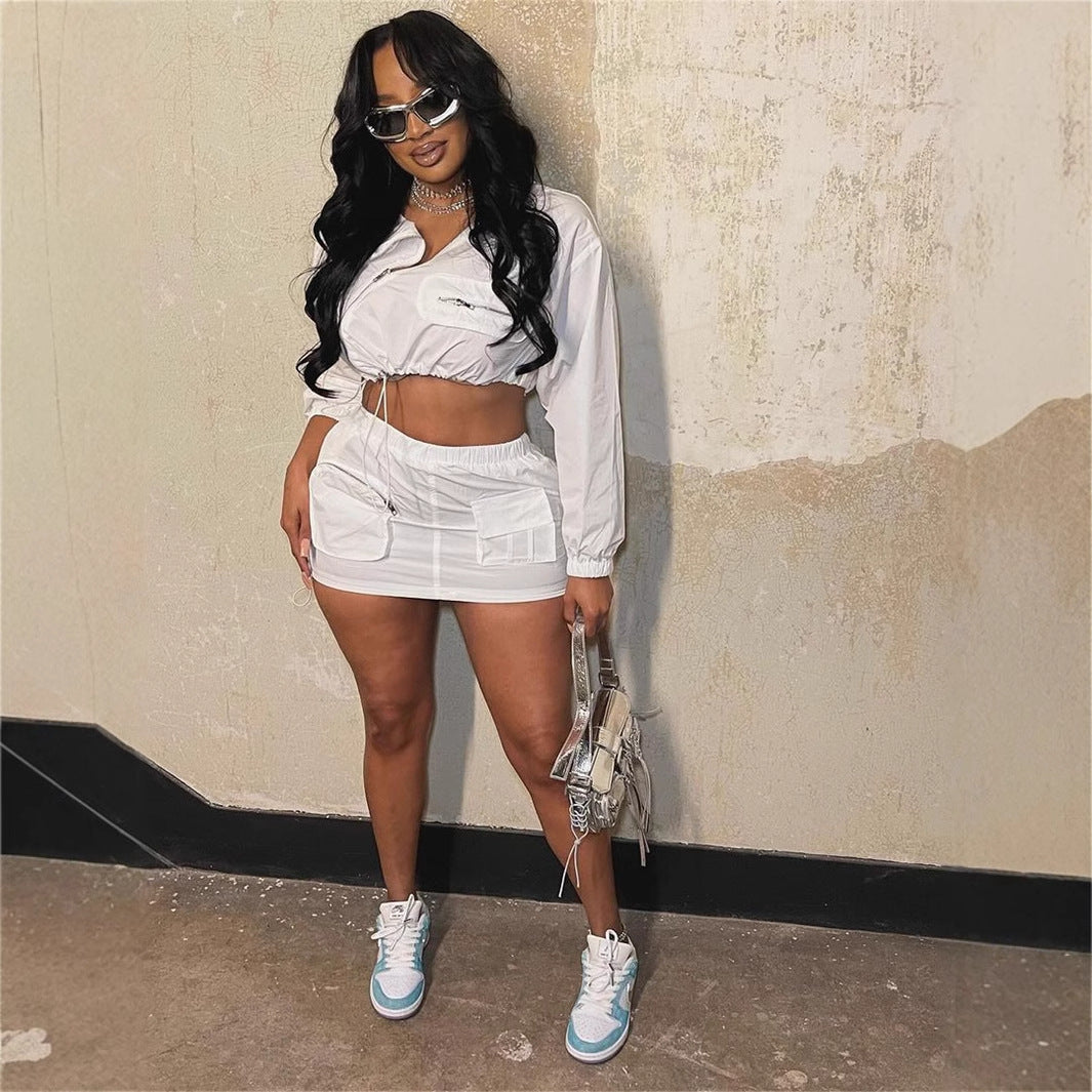 Veste de travail moulante unie à fermeture éclair, coupe sexy, manches longues, jupe taille basse