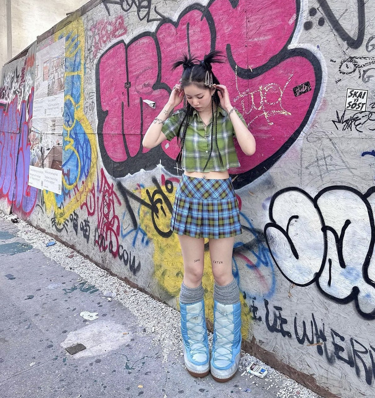 Jupe courte plissée taille haute pour femme, fine et assortie, avec un mot.