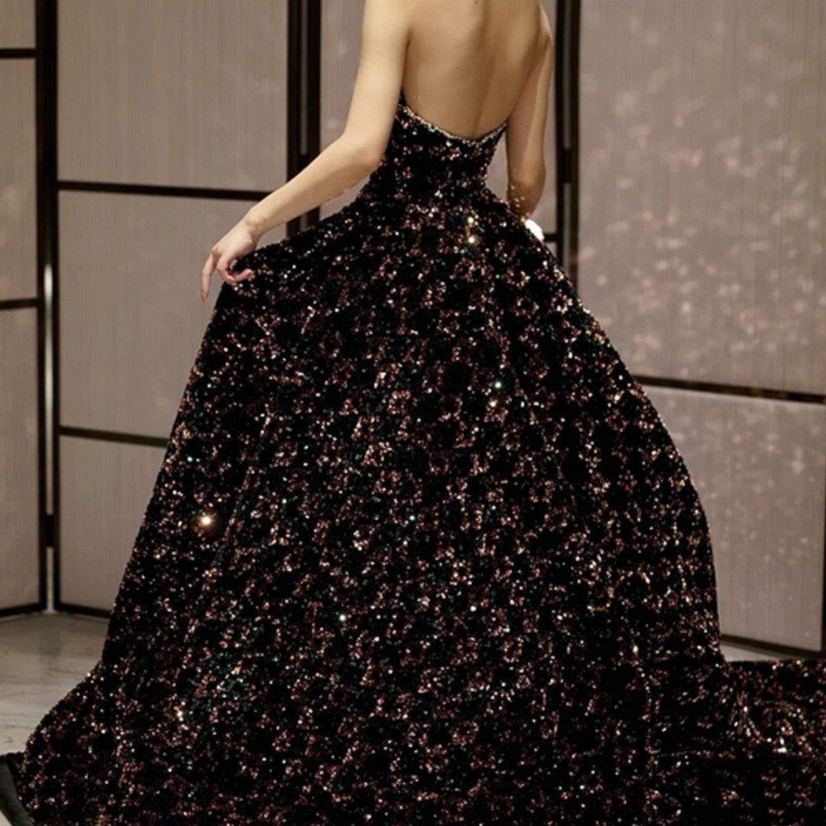 Robe de scène à sequins pour femme, style drag queen, jupe traîne