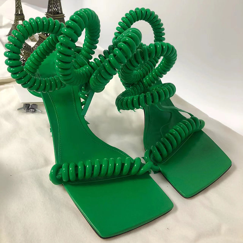 Sandales printanières à talons aiguilles et bout carré, bride enveloppante
