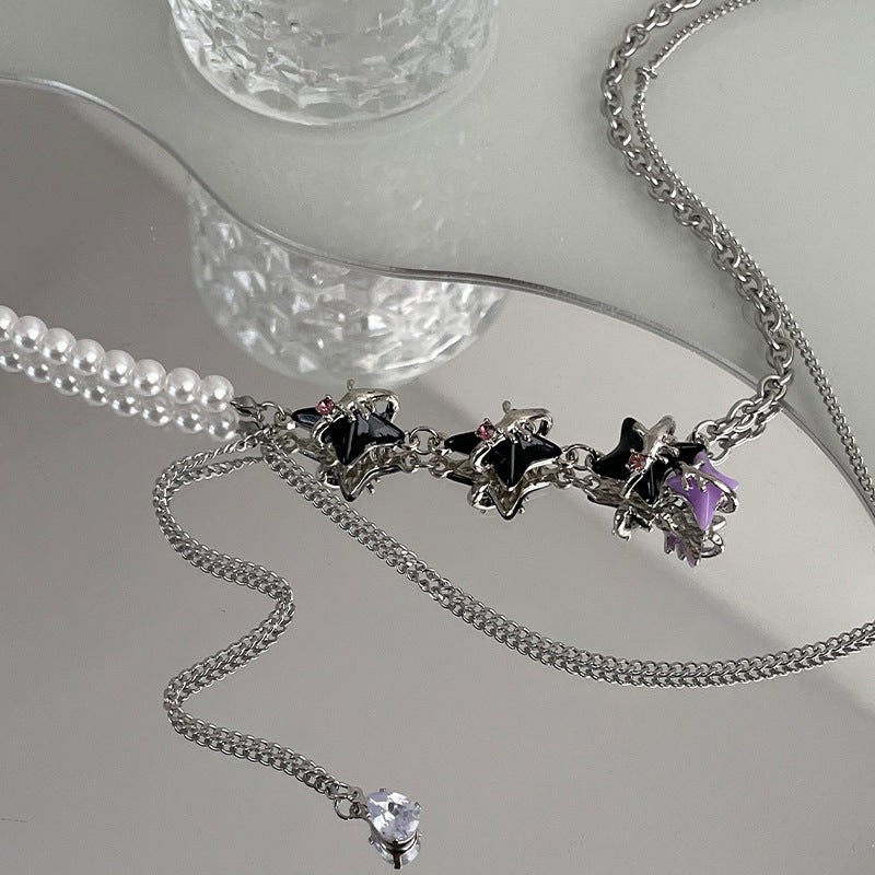 Black Purple Asterism Pearl Necklace For Women Special Interest Light Luxury