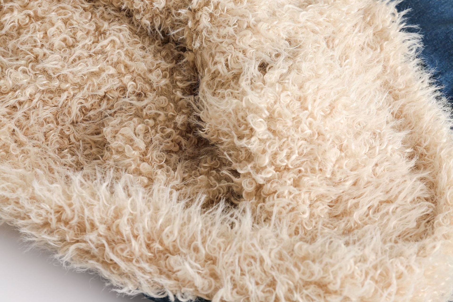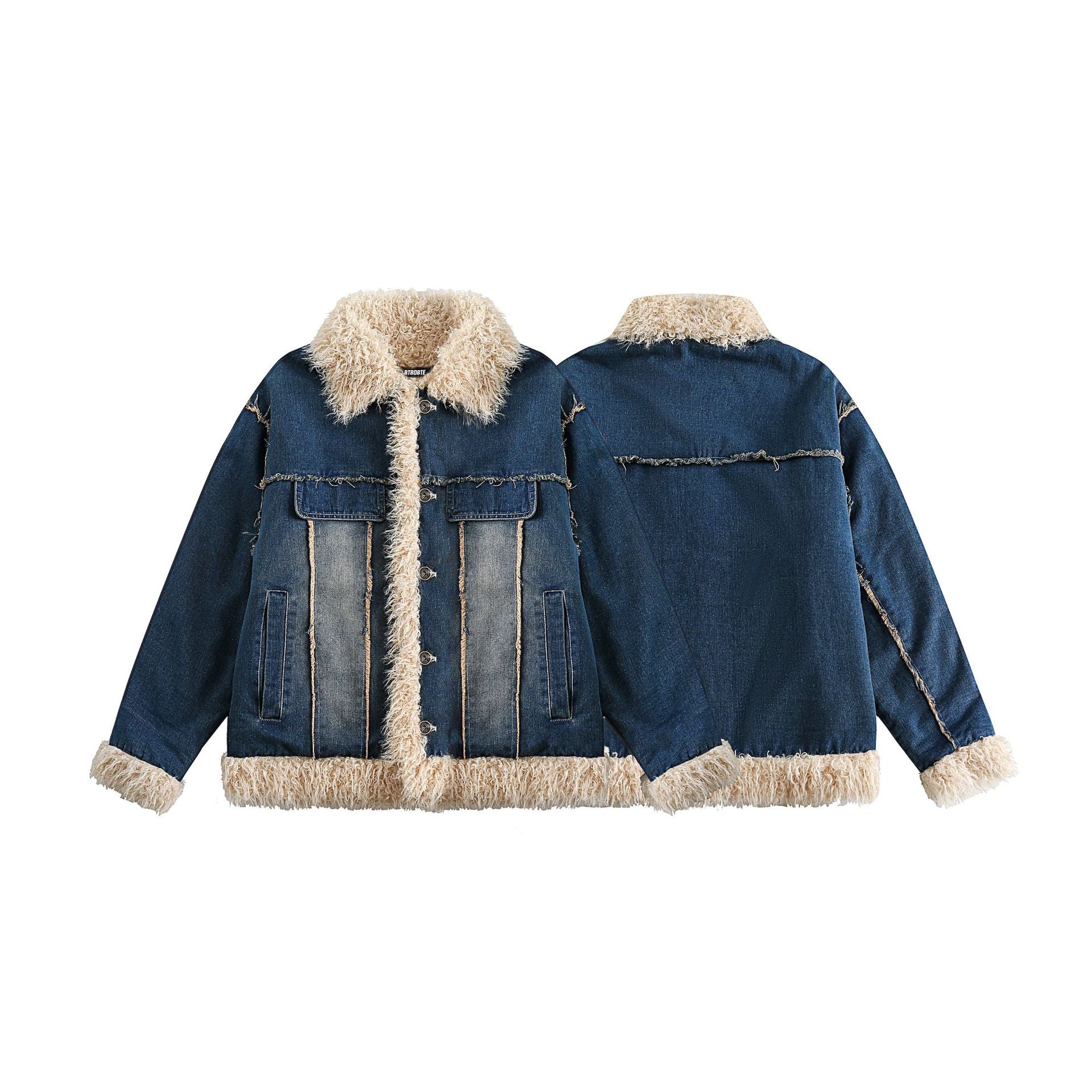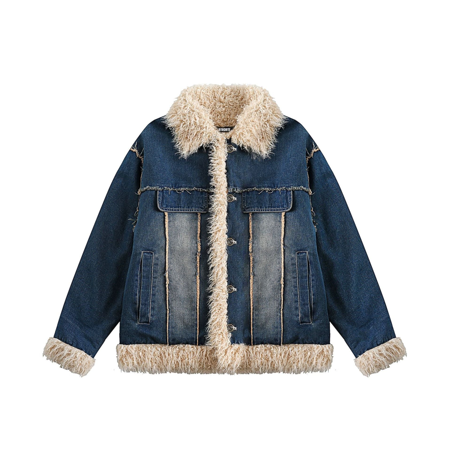 Blue Denim Fur Collar Coat Women's Retro Cotton