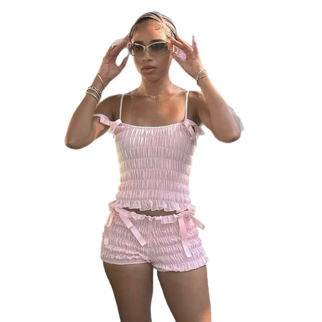 Pantaloncini plissettati con fiocco in pizzo, casual