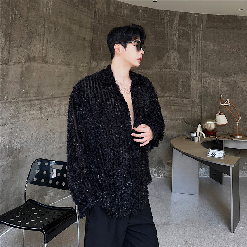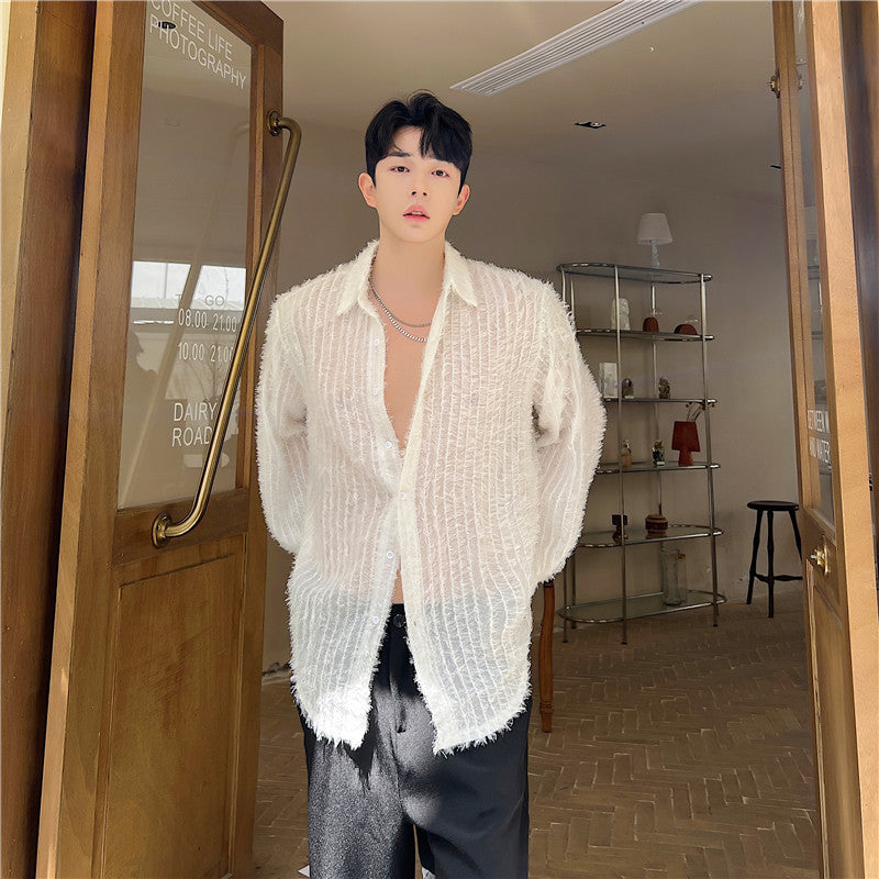 Bright Silk Micro Perspective Thin Mesh Shirt