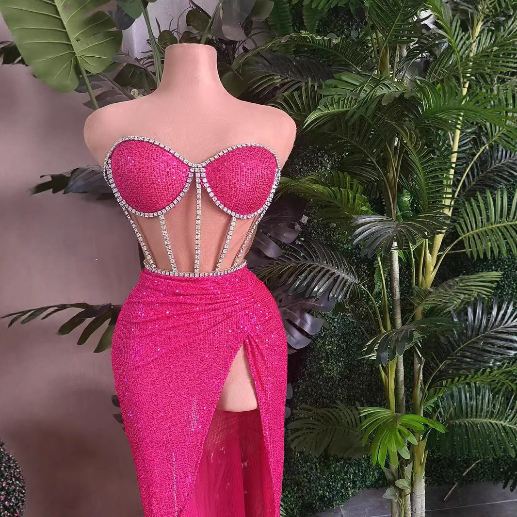 Casual All-match Shiny Rhinestone Sequins Top Dress Suit