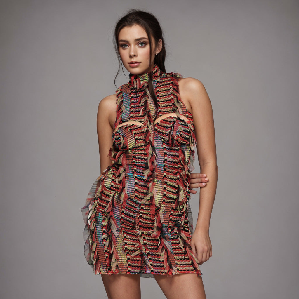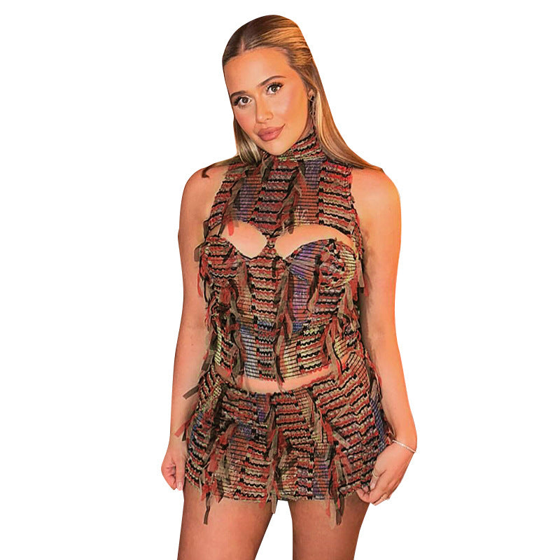 Color-block Crew Neck Sleeveless Backless Hollow Out Suit