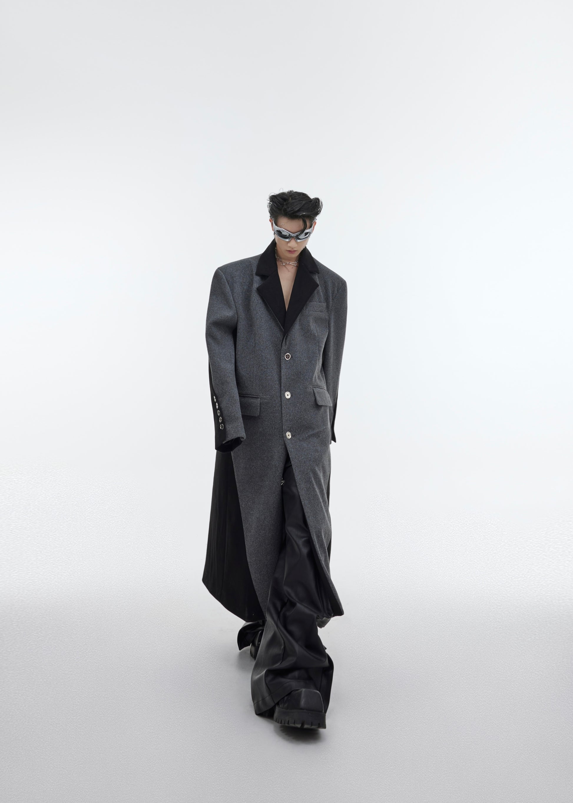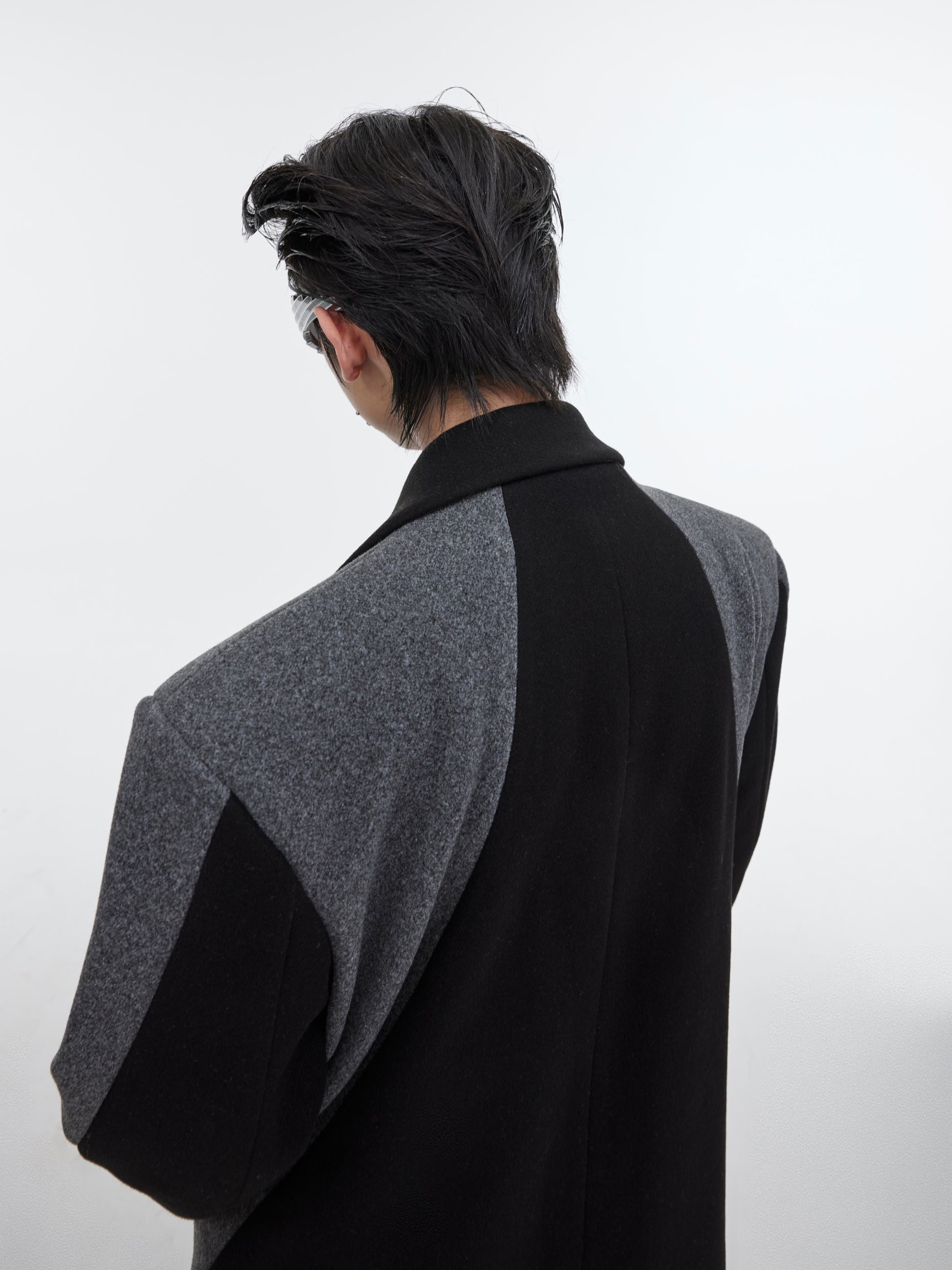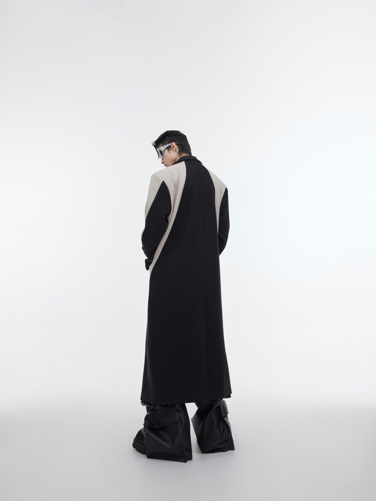 Cappotto lungo in lana al ginocchio con patchwork di colori a contrasto